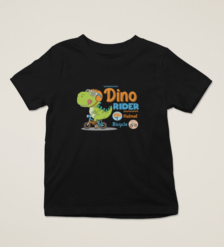 Dino Rider, Boys Round Neck Printed Blended Cotton Tshirt (black)