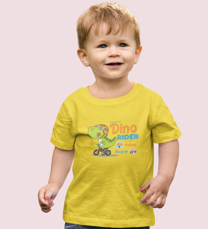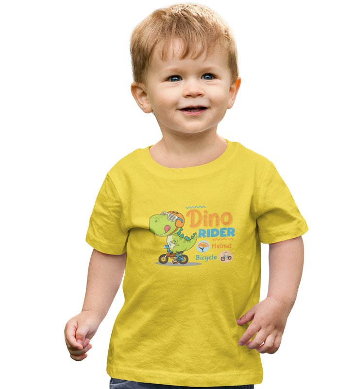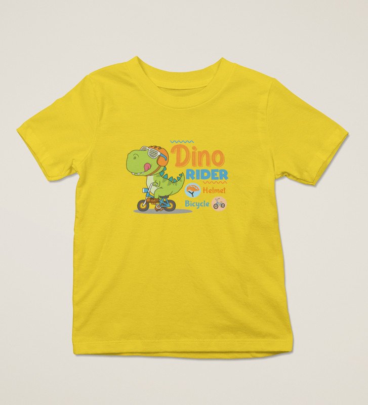 Dino Rider, Boys Round Neck Printed Blended Cotton Tshirt (Yellow)