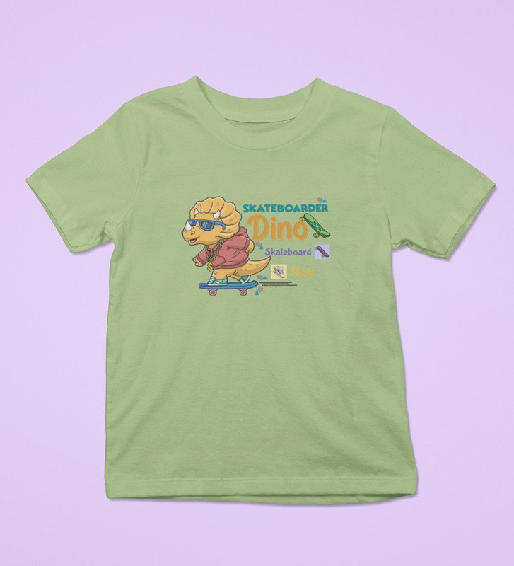 Dino Skater, Printed Cotton T-shirt (olive green) for Boys