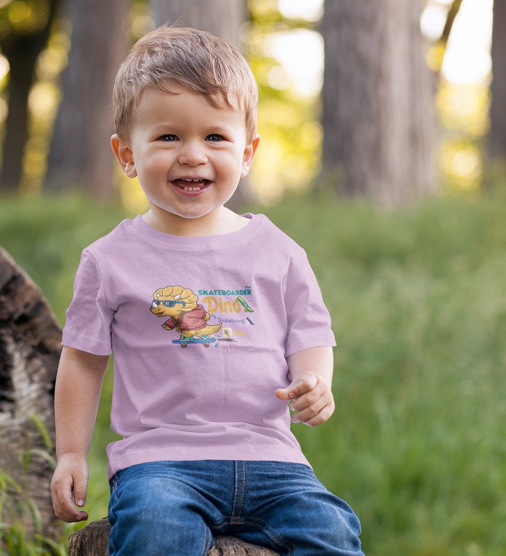 Dino Skater, Printed Cotton T-shirt (Purple) for Boys