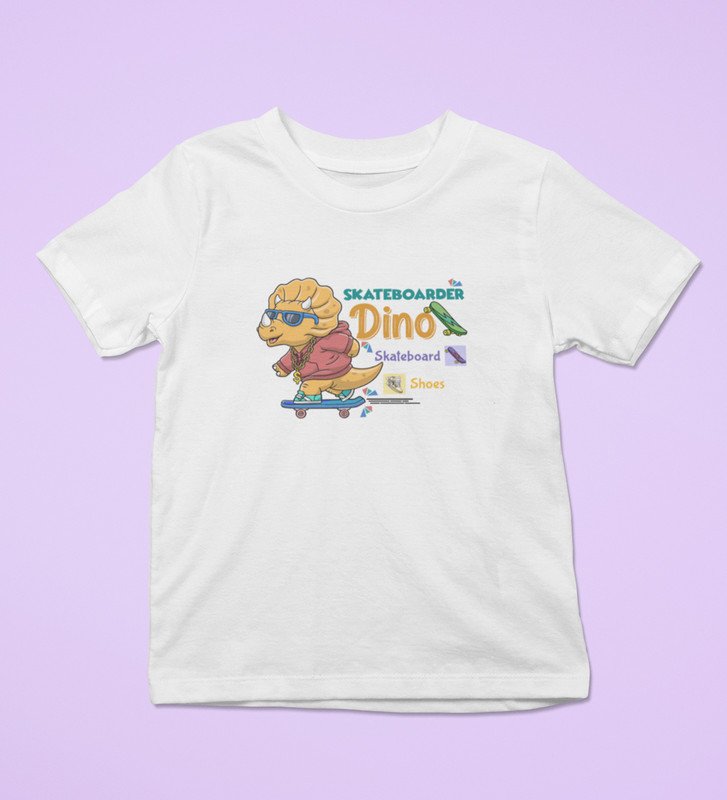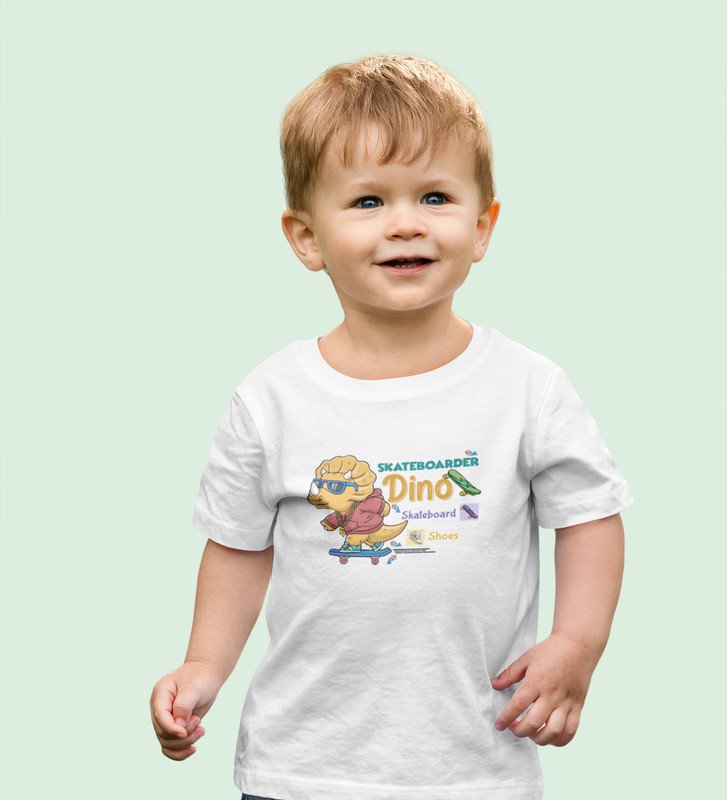 Dino Skater, Printed Cotton Tshirt (White) for Boys