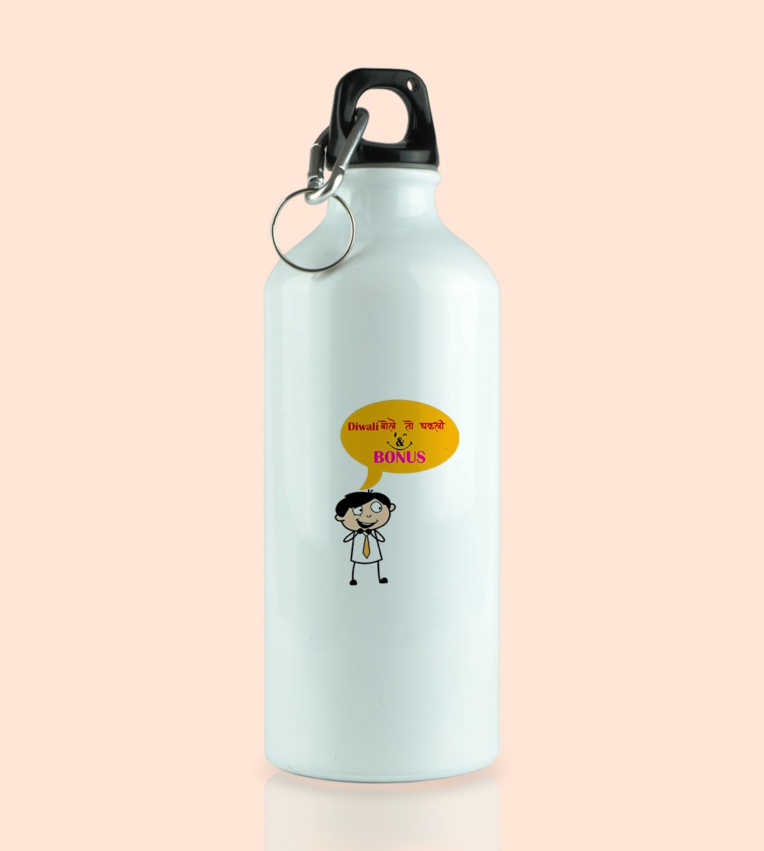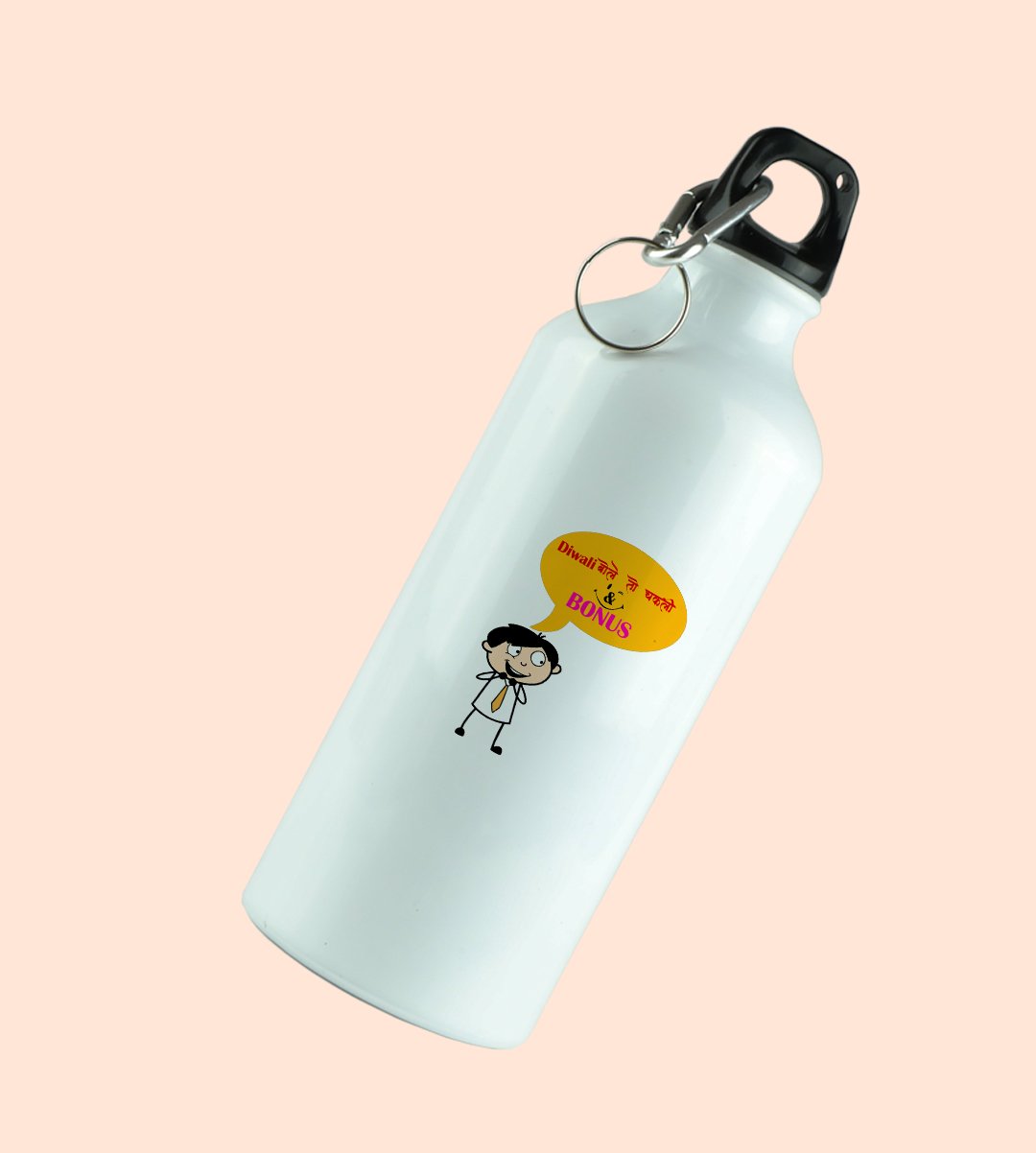 Light up your Diwali celebrations with our "Diwali Bonus Meme" sipper bottle. The playful Hinglish message "Diwali bole tho chaklo Bonus" adds a humorous twist to the festivities. Sip your coffee and share a laugh with this whimsical design that captures the joy of Diwali bonuses.