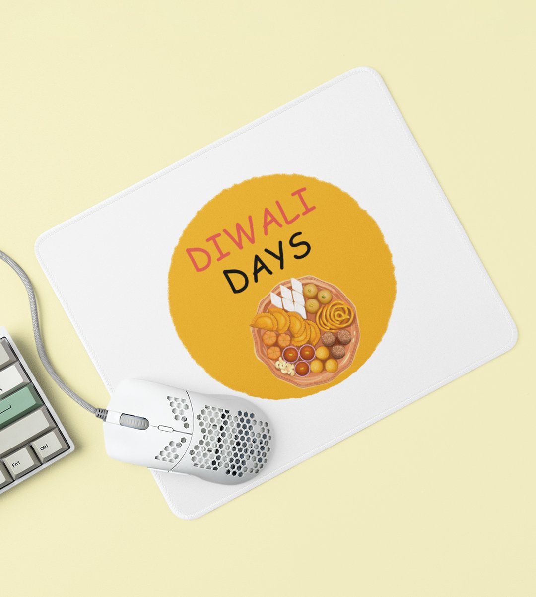 Relish the essence of Diwali and its sweets in your workspace with our Diwali Days and Sweets Mouse Pad. It's a delightful reminder of the festival's joys.
