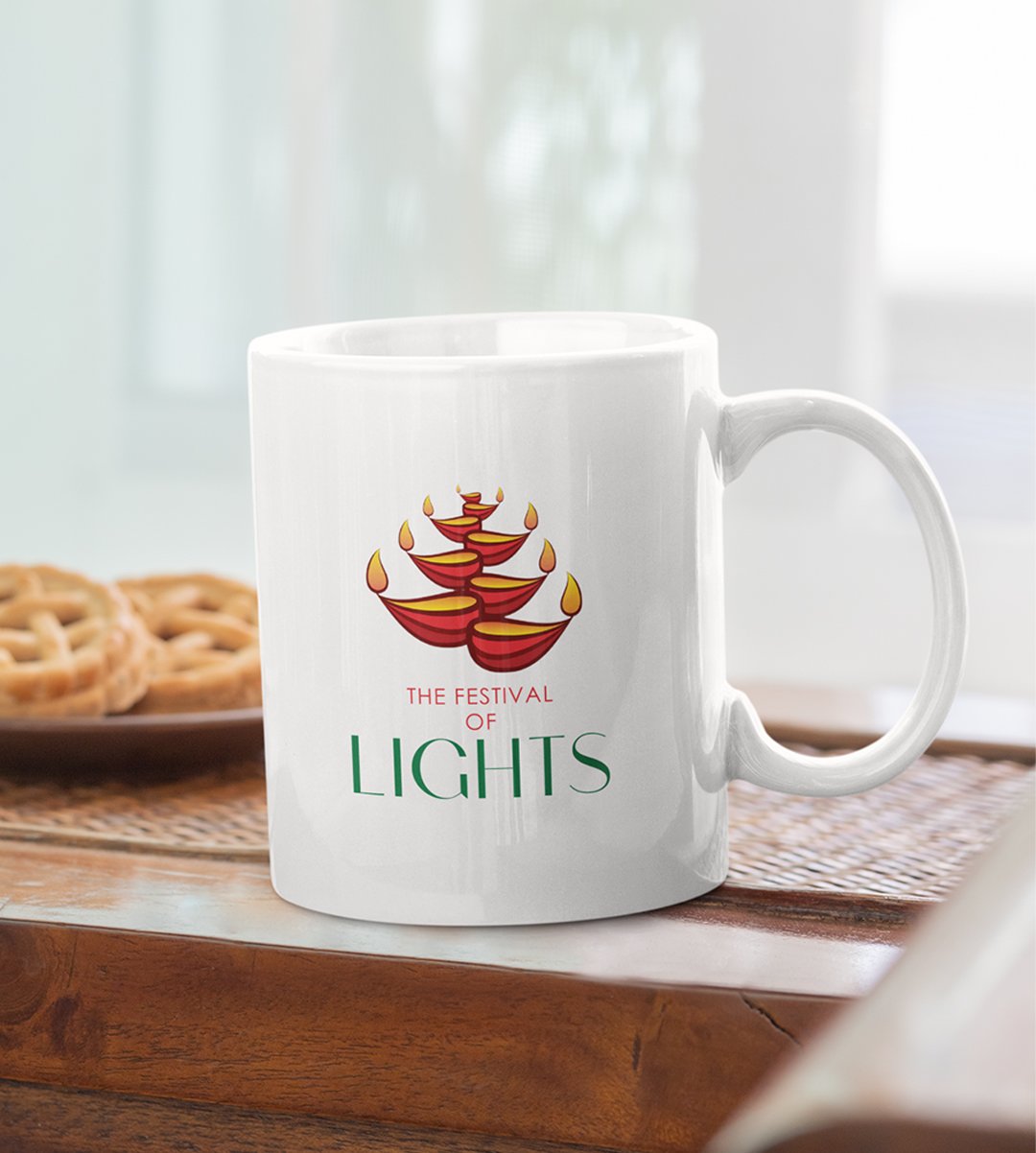 Illuminate your Diwali celebrations with our "Festival of Lights" Diya Coffee Mug. The radiant diya images evoke the spirit of the festival, spreading warmth and joy. Enjoy your festive beverages in the company of Diwali's brilliance.