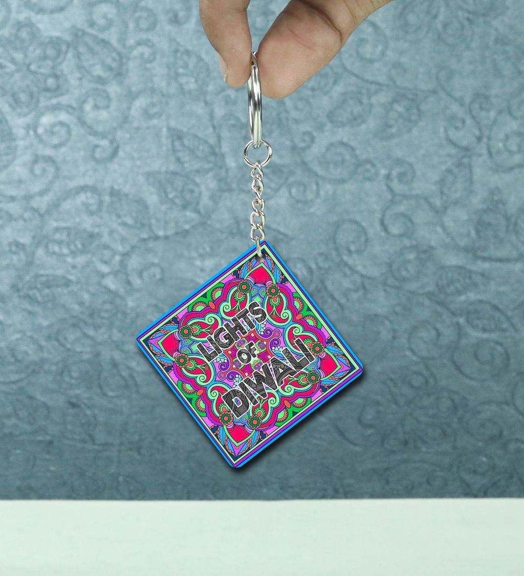 Diwali Festival Sparkles Bright in Neon Deep Printed Keychain Pack of 2
