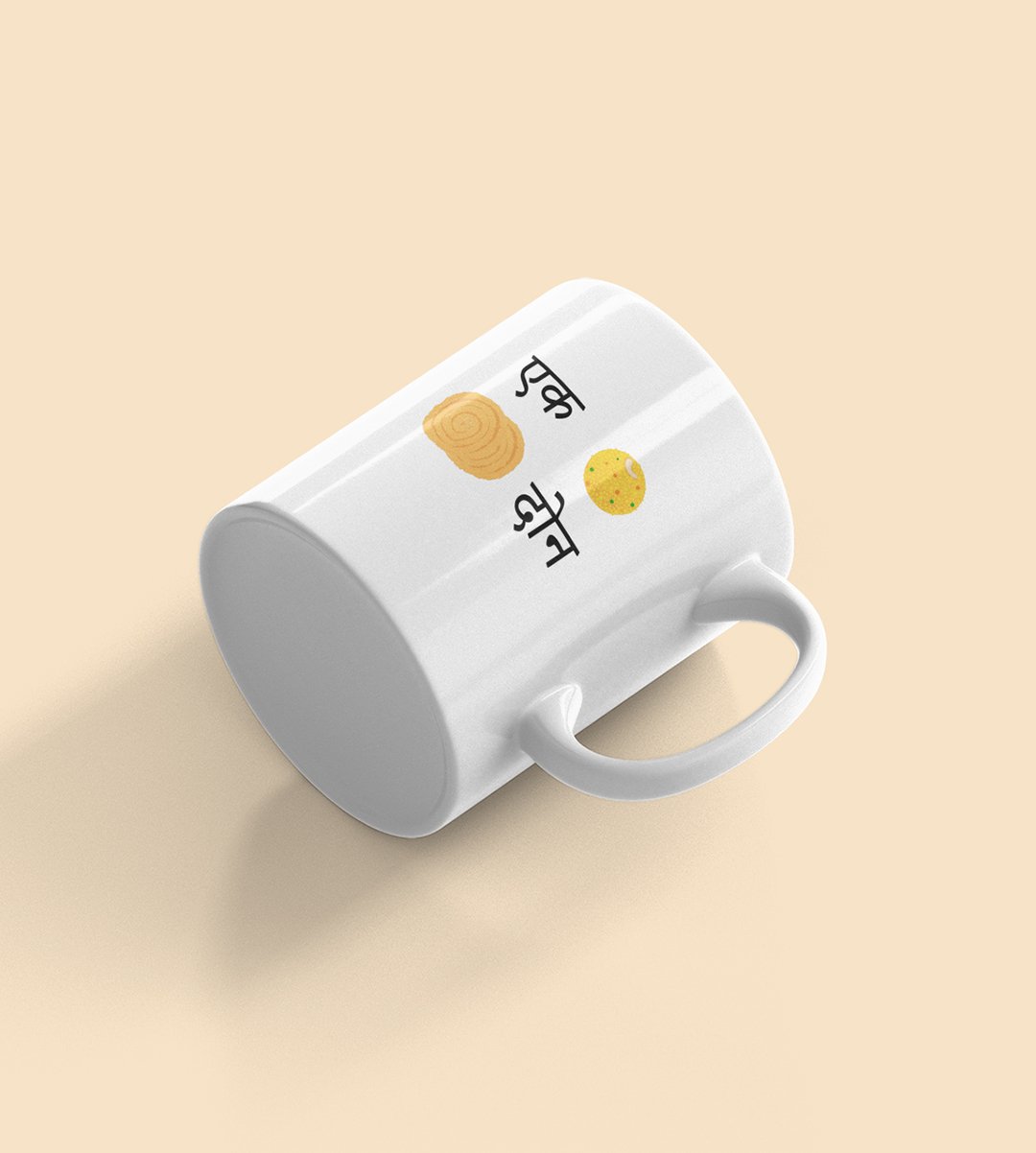 Celebrate the delectable delights of Diwali with our "Diwali Snack Delight" Coffee Mug. This delightful design showcases the perfect combination of 1 Ladoo and 2 Chakli, a treat for your taste buds. Sip your coffee and indulge in the joy of Diwali snacking with this mouthwatering mug.