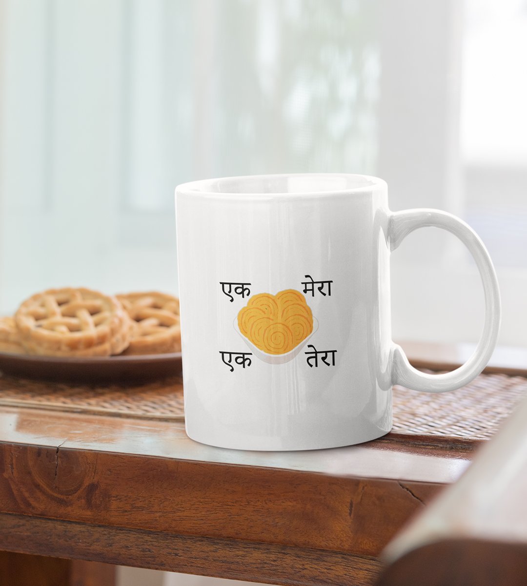 Diwali Snack Delight Coffee Mug - 'Ek Chakli Mera, Ek Chakli Tera' Chakli Celebration