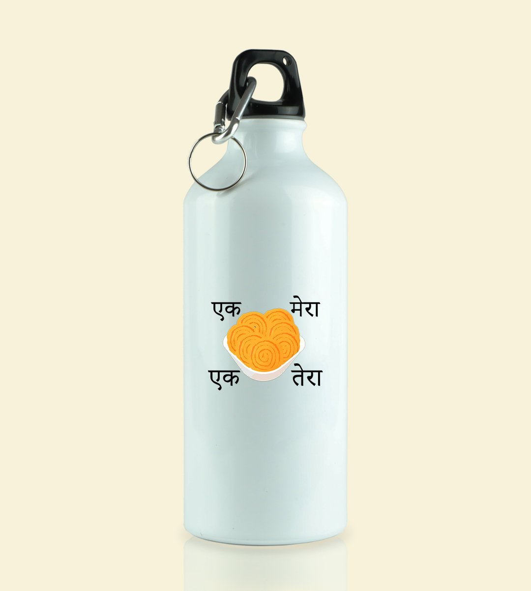 Embrace the delightful world of Diwali snacks with our "Diwali Snack Delight" sipper bottle. The playful message "Ek Chakli Mera, Ek Chakli Tera" adds a lighthearted touch to your Chakli celebration, capturing the essence of festive snacking. Sip your coffee and enjoy the flavors of Diwali with this joyful sipper bottle.