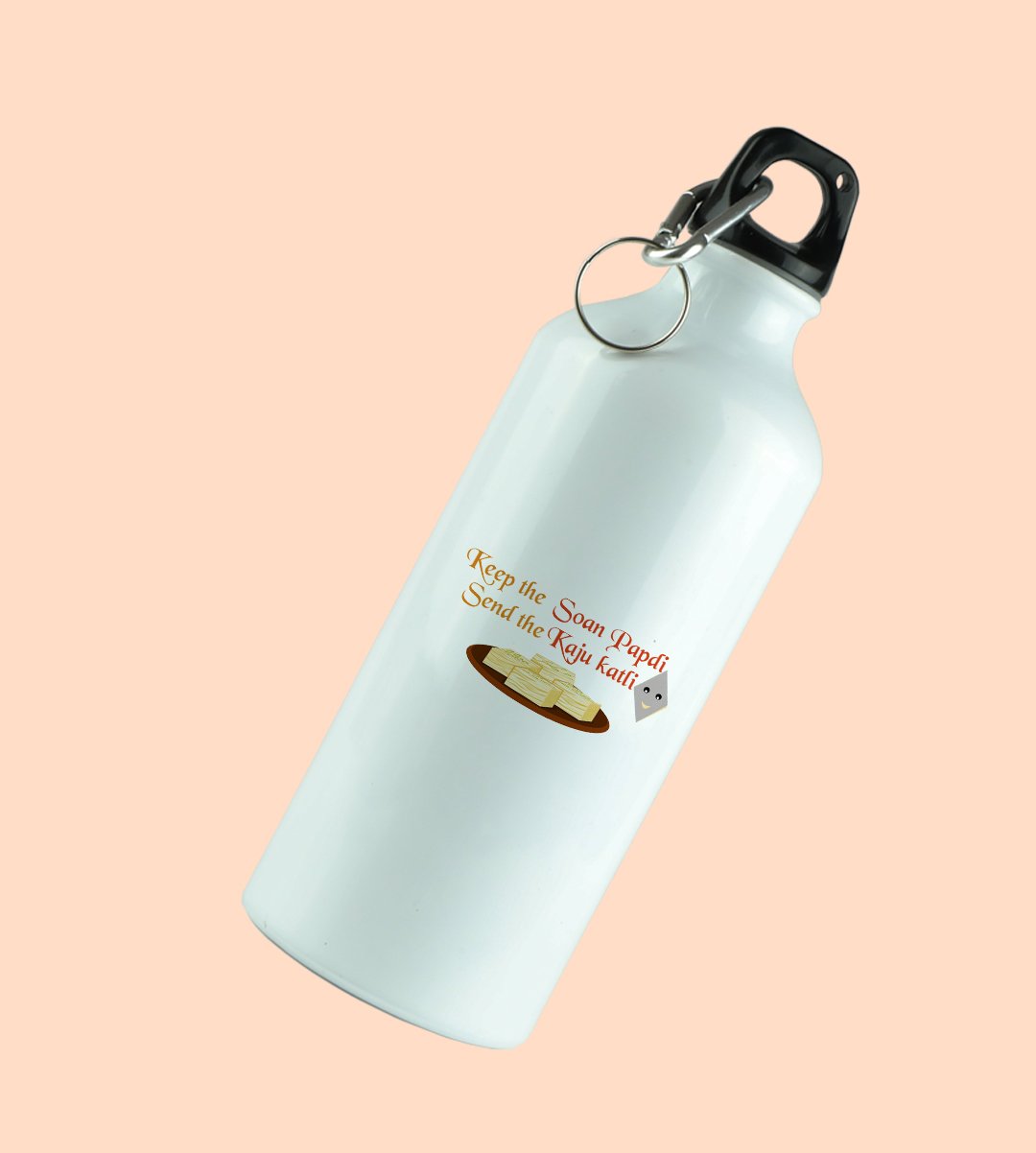 Indulge in the sweetness of Diwali with our "Diwali Sweets Delight" sipper bottle. The witty message "Keep the Sonpapdi, Send the Kaju Katli" adds a lighthearted touch to the festive season. Sip your coffee and savor the flavors of Diwali with this delightful sipper bottle.