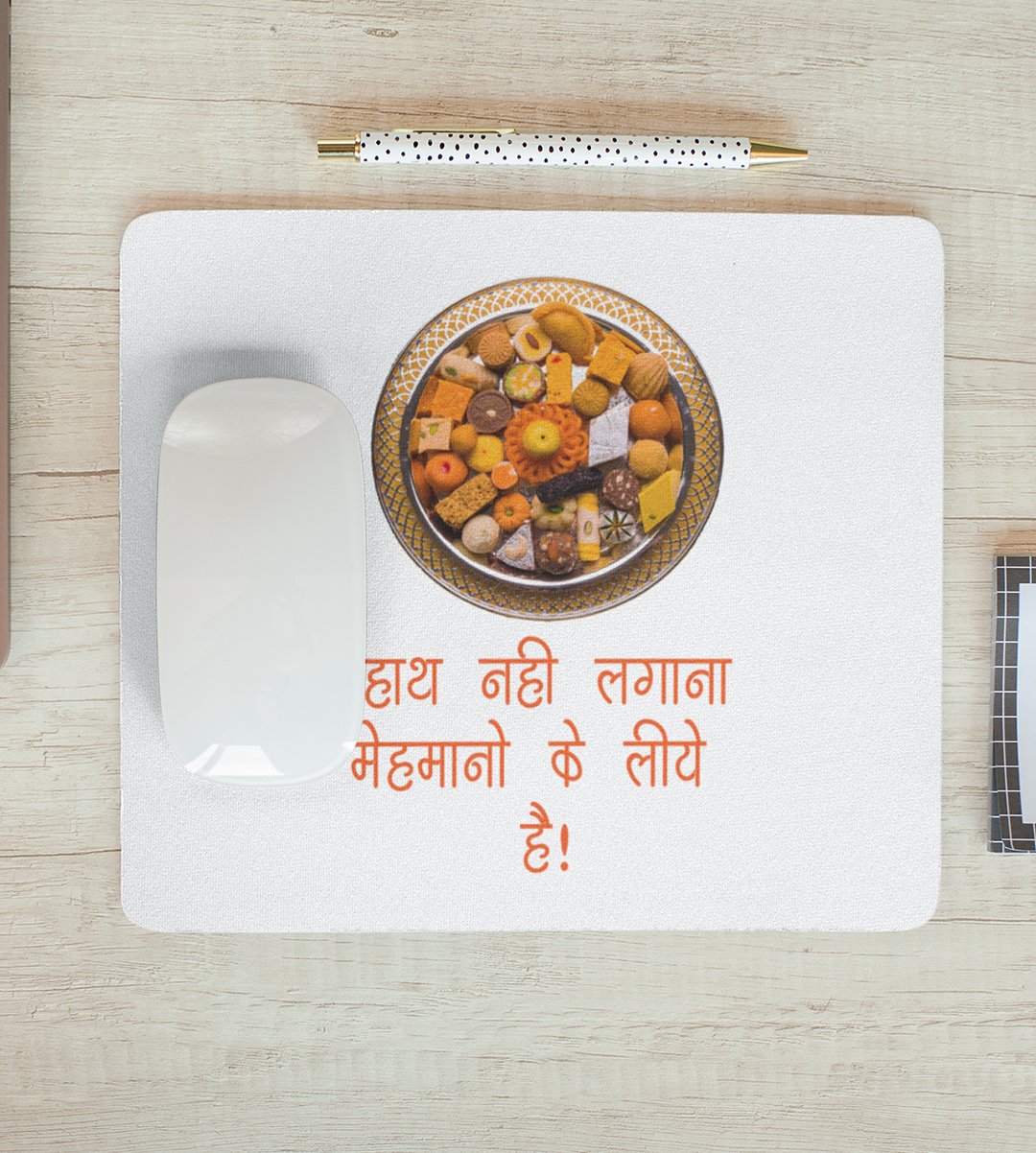Diwali Sweets Feast Mouse Pad - Hath Nai Lagana, Mehmano Ke Liye Hai
