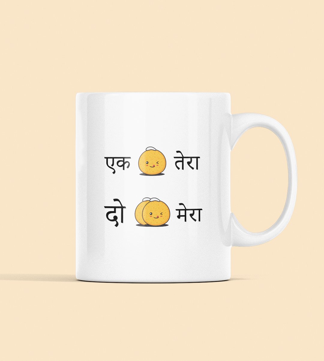Indulge in the sweet delight of Diwali with our "Diwali Sweets Fun" Coffee Mug. The playful message "Ek Tera, 2 Mera" adds a lighthearted touch to your Ladoo celebration, bringing out the true essence of the Diwali theme. Sip your coffee and relish the joys of sharing and savoring sweets during the festival.