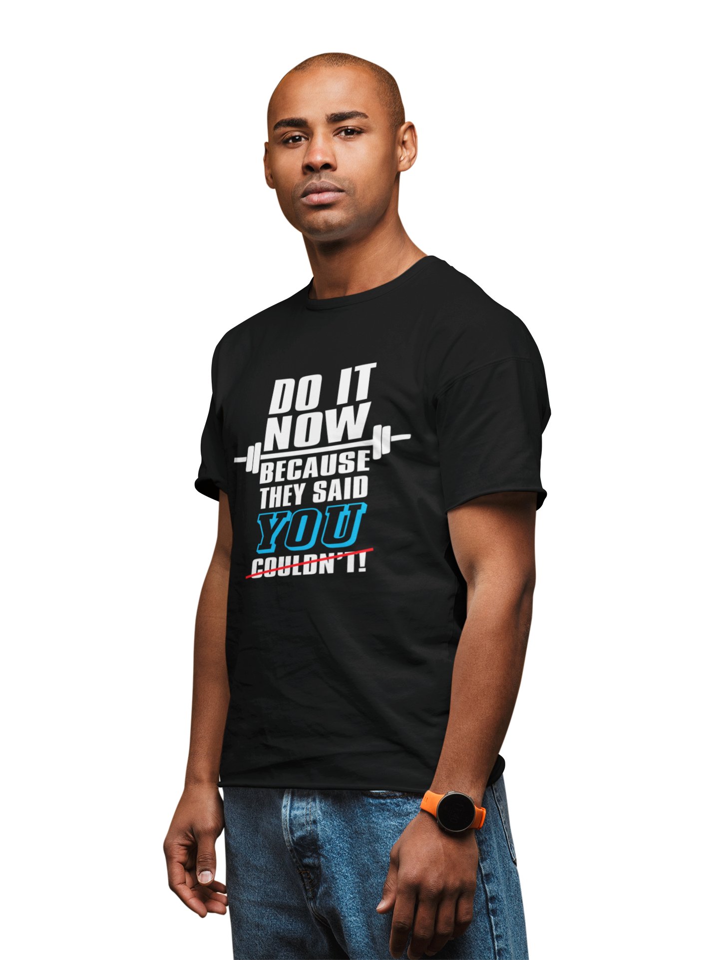 Do It Now, Beacause They Said You Couldn't, (BG White and Blue), Round Neck Gym Tshirt (Black Tshirt) - Clothes for Gym Lovers - Suitable for Gym Going Person - Foremost Gifting Material for Your Friends and Close Ones