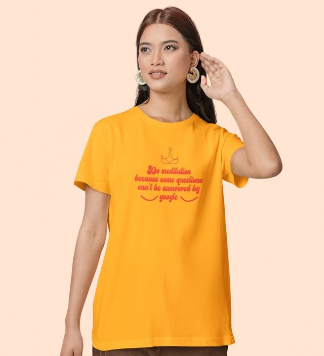 Do Meditation Yellow Round Neck Cotton Half Sleeved Women T-Shirt with Printed Graphics