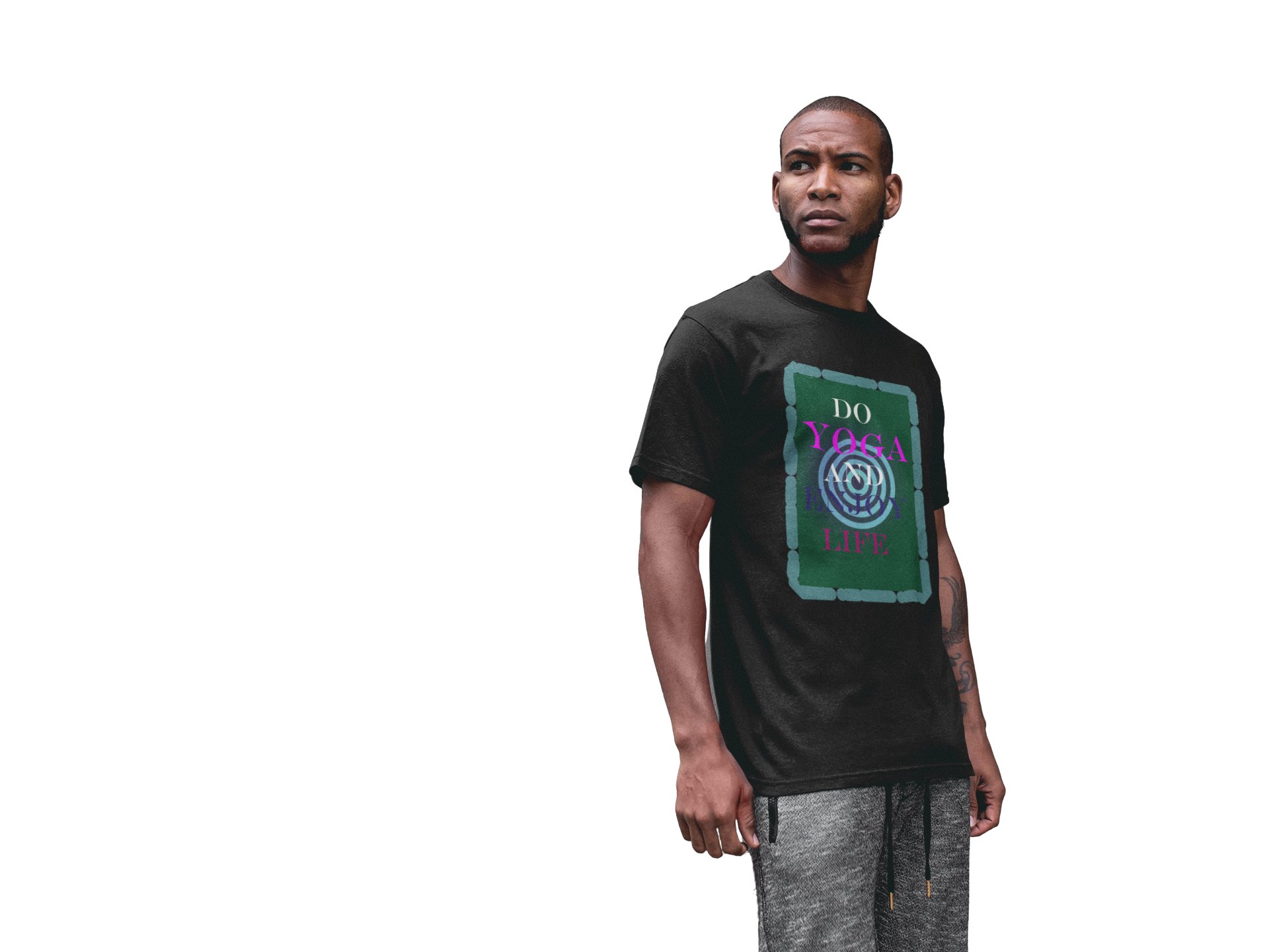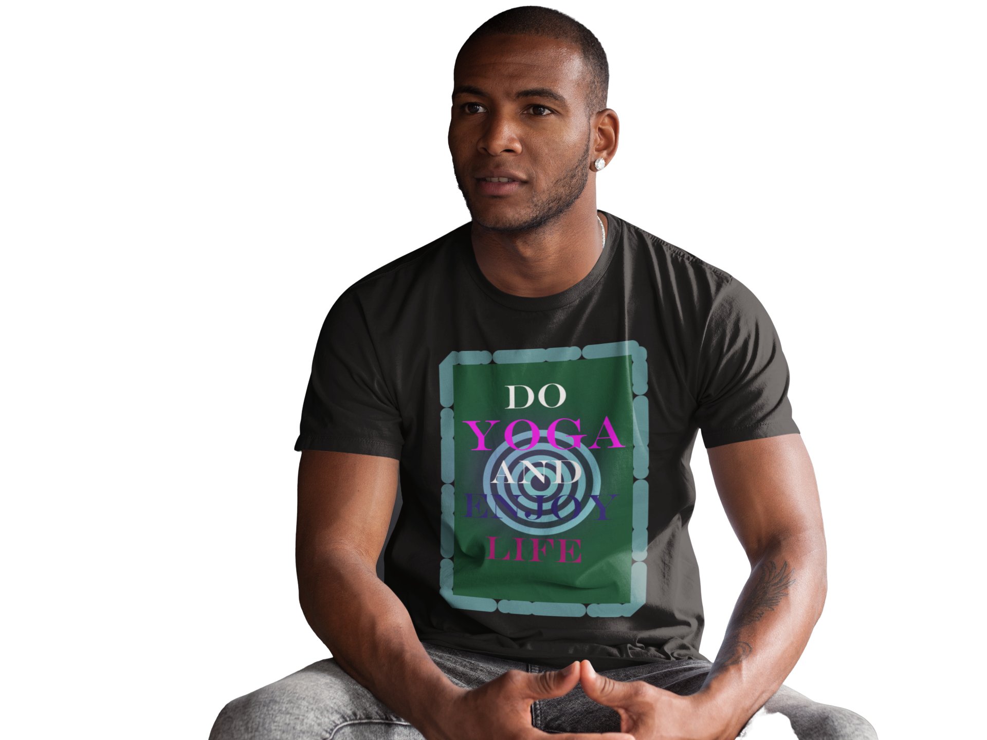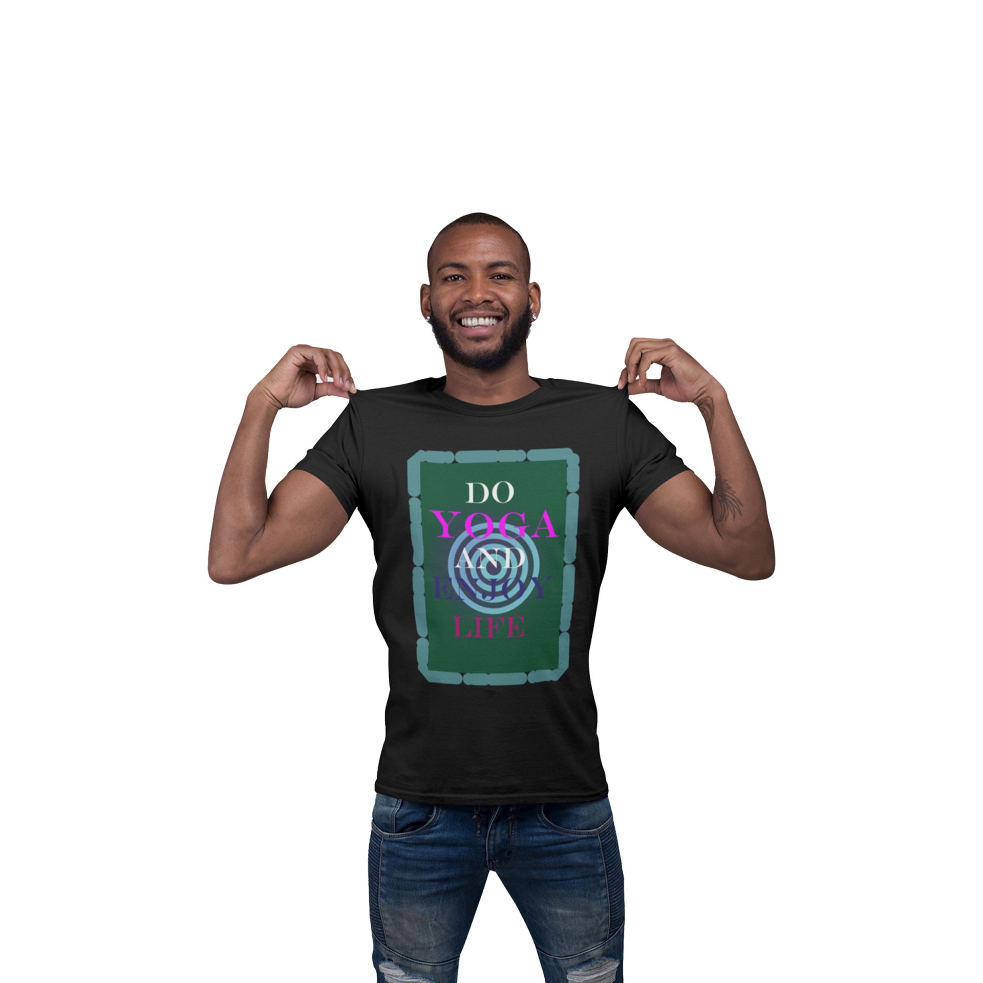 Do Yoga And Enjoy Life, (BG Rectangular Green), Round Neck Tshirt - Clothes for Yoga Lovers - Suitable For Regular Yoga Going People - Foremost Gifting Material for Your Friends and Close Ones