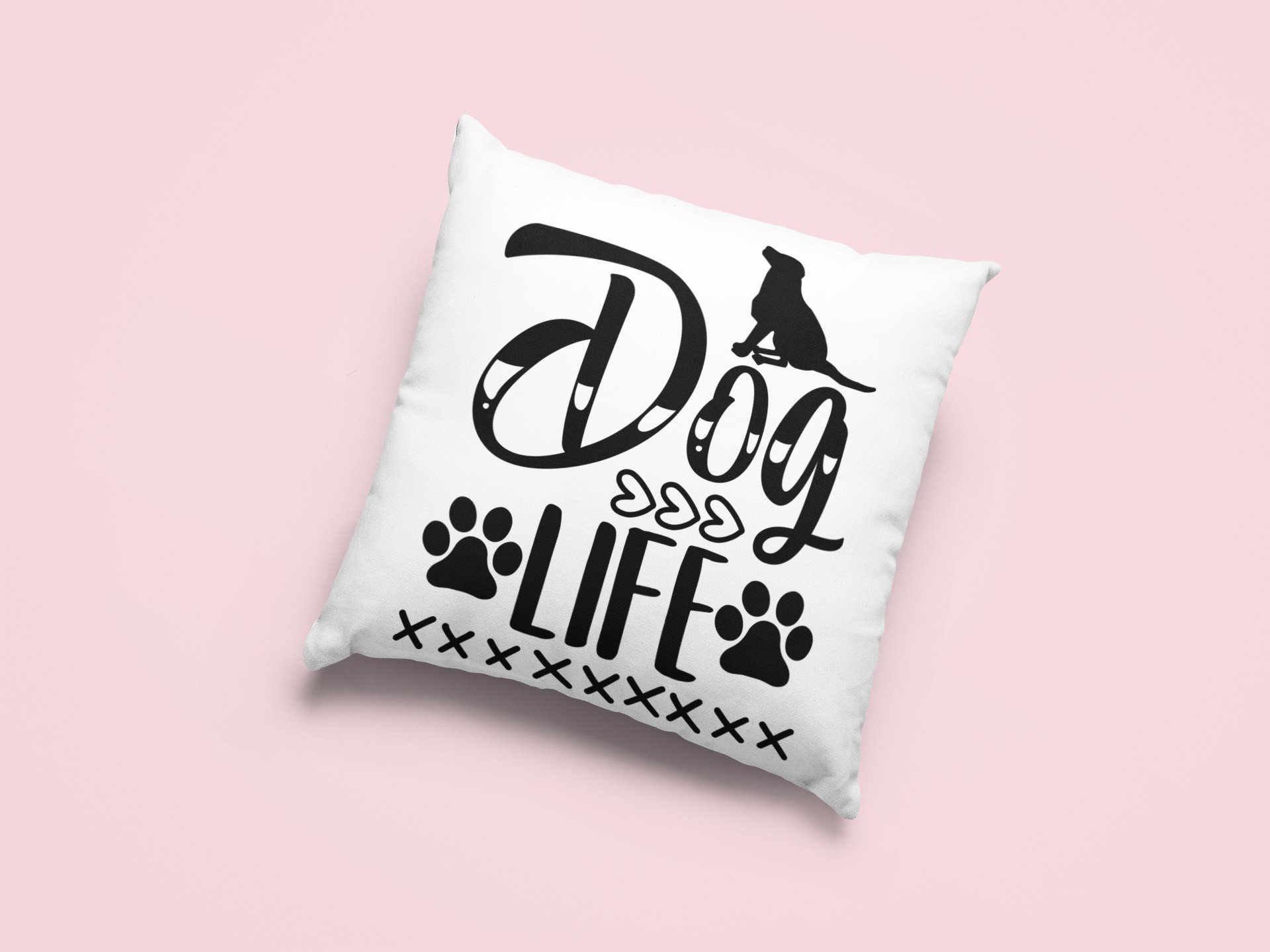 Dog life text in black-Printed Pillow Covers For Pet Lovers(Pack Of Two)