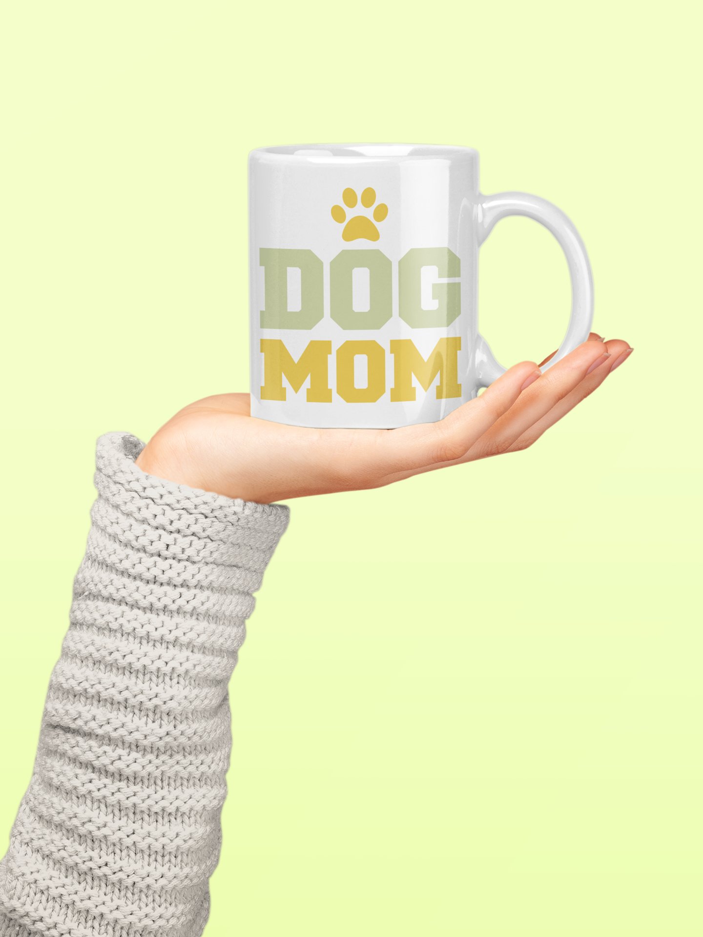 Dog mom Light Green And yellow Text - pets themed printed ceramic white coffee and tea mugs/ cups for pets lover people