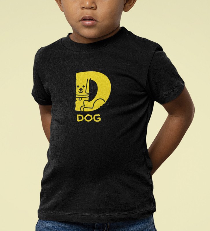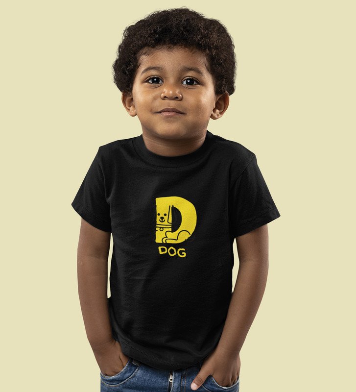 Doggy Dog, Boys Round Neck Printed Blended Cotton Tshirt (Black)