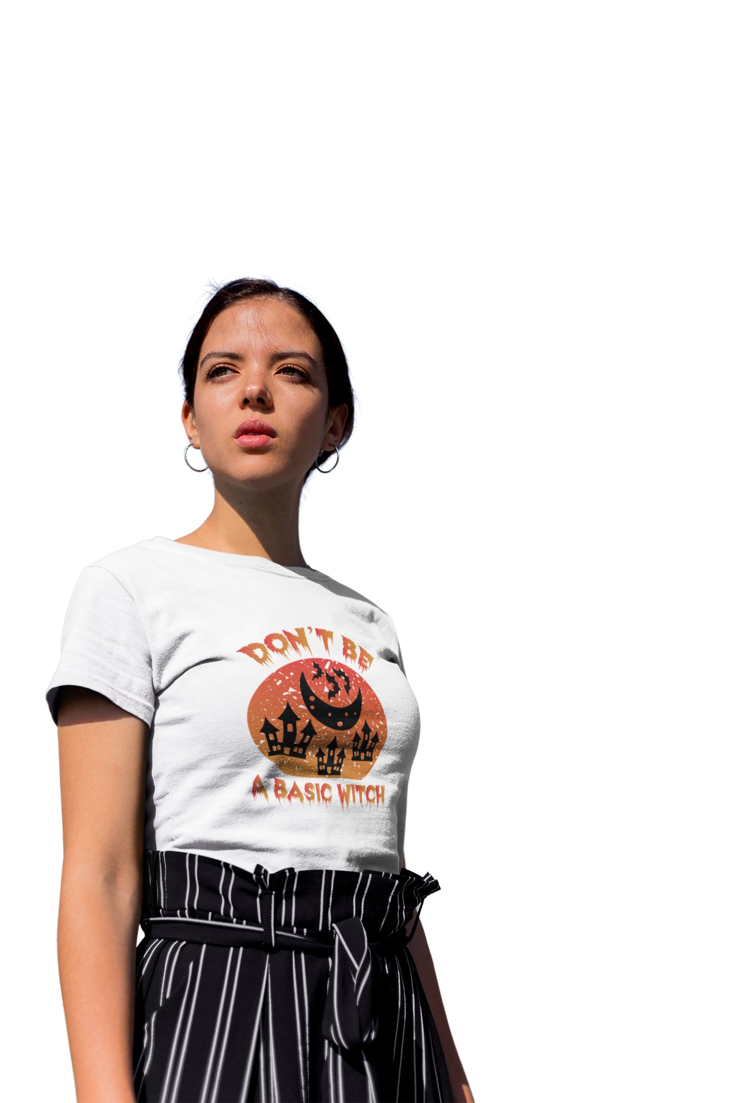 Don't be a basic, moon and house - Printed Tees for Women's -designed for Halloween