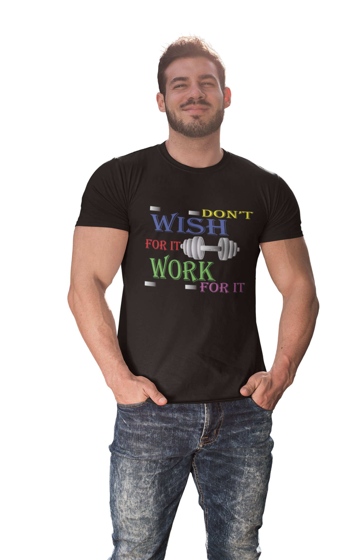 Don't Wish For It, Work For It, Round Neck Gym Tshirt (Black Tshirt) - Clothes for Gym Lovers - Suitable for Gym Going Person - Foremost Gifting Material for Your Friends and Close Ones