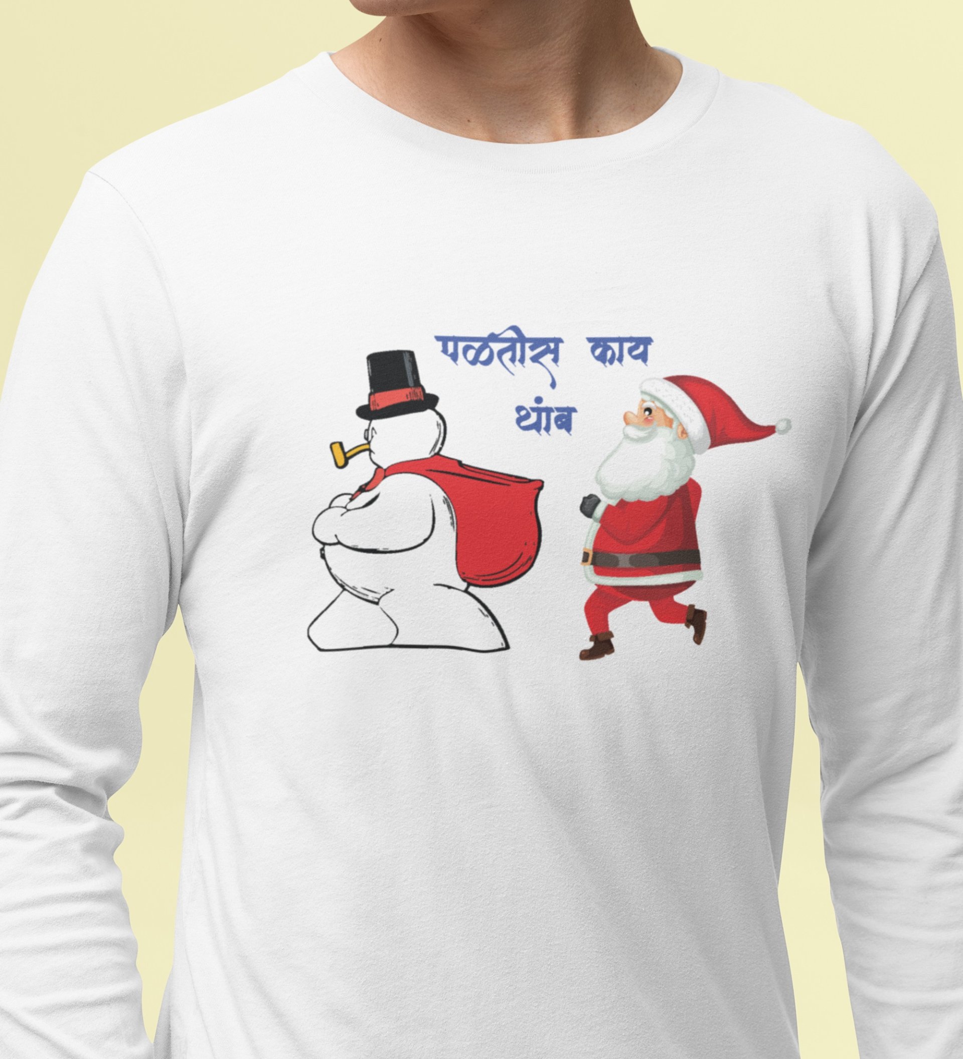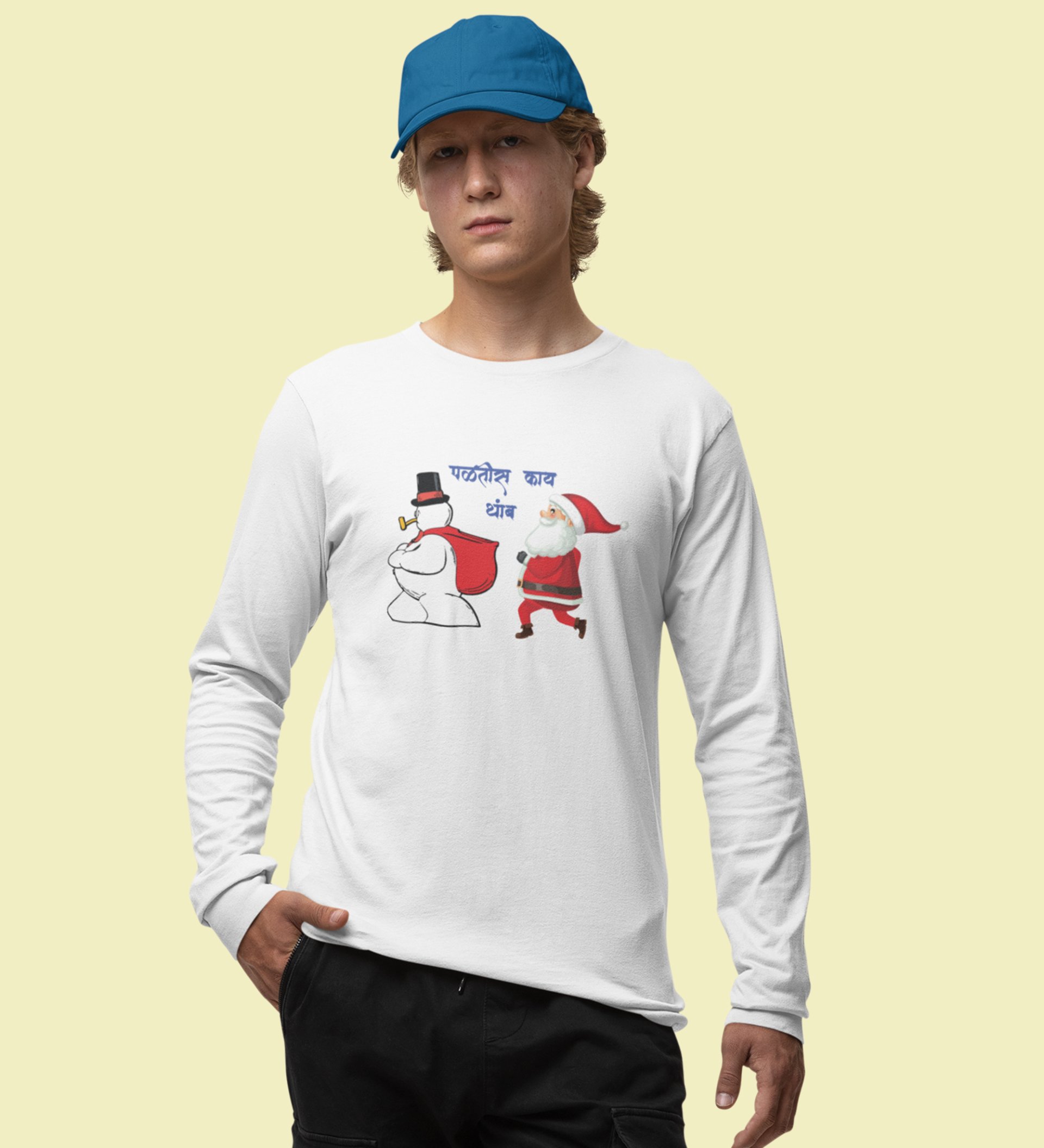 Don't You Run : Tranform Your Fashion withWhiteFull Sleeve T-shirt Marathi Theme - BPA-Free, Perfect for Holiday Workout