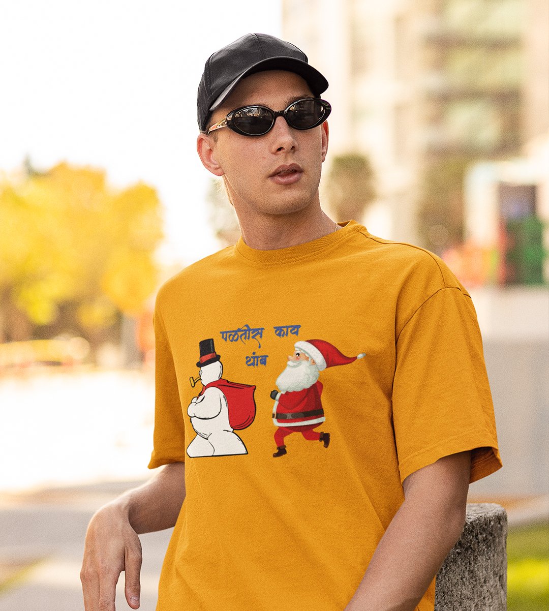 Don't You Run : Tranform Your Fashion with(Yellow) T-shirt Marathi Theme - BPA-Free, Perfect for Holiday Workout