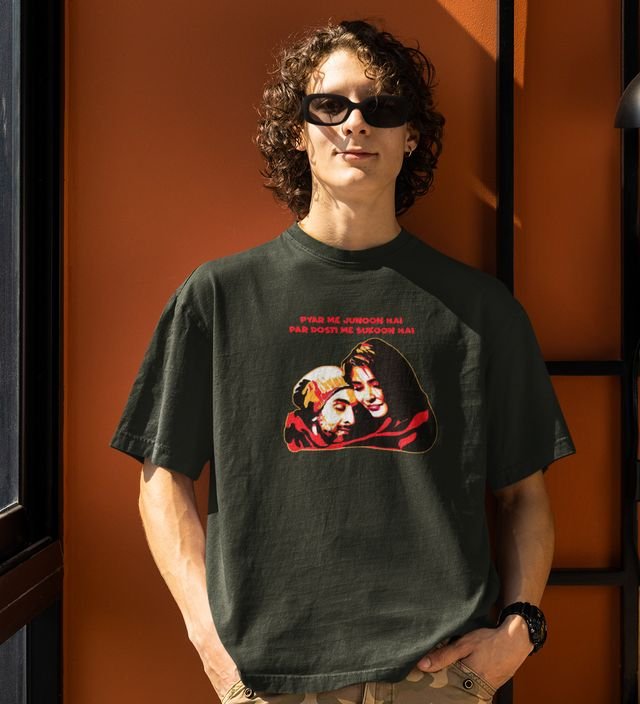 Dosti Is Peace Green Round Neck Cotton Half Sleeved Men T Shirt with Printed Graphics