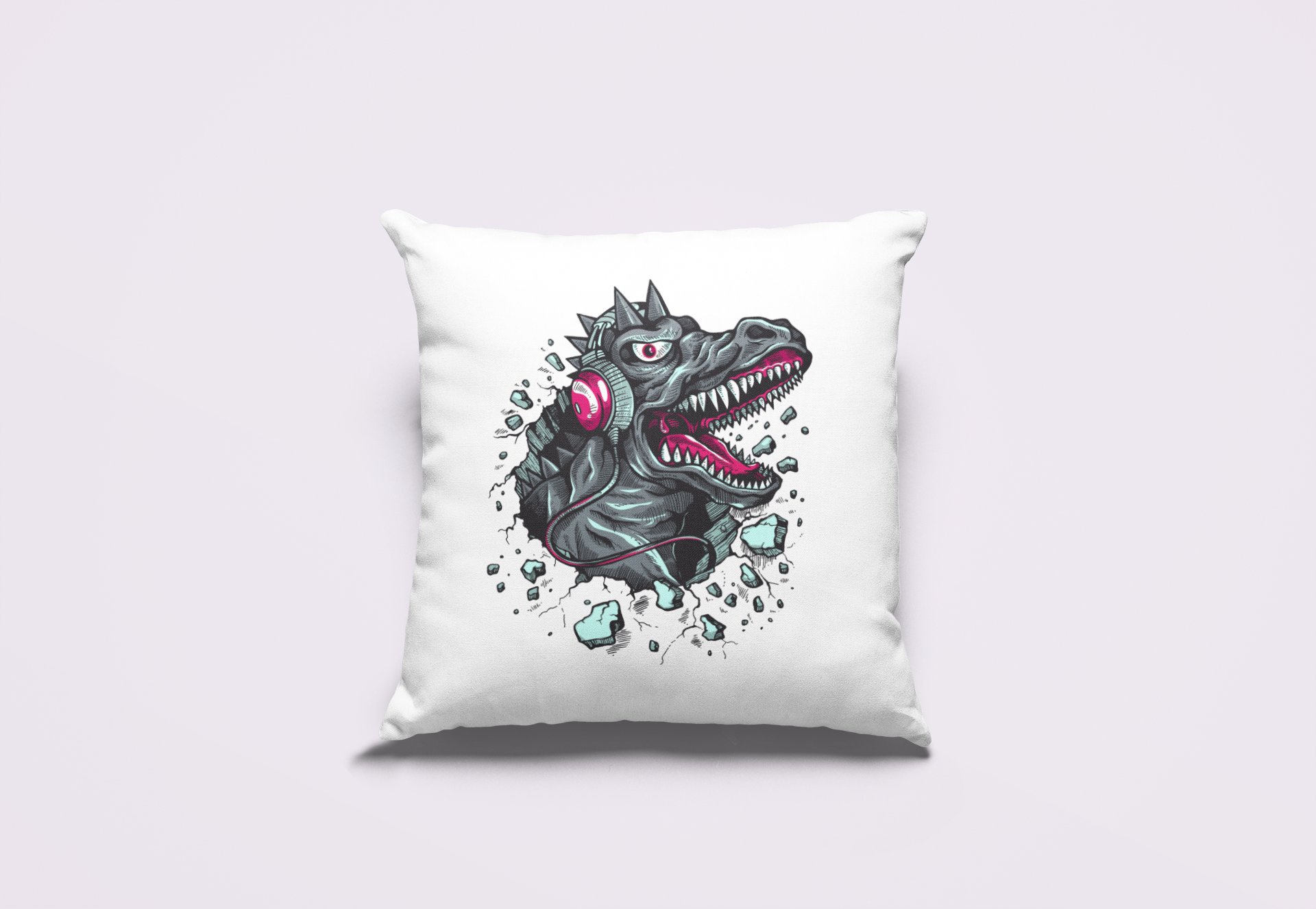 Dragon With Headphone-Printed Pillow Covers(Pack Of 2)