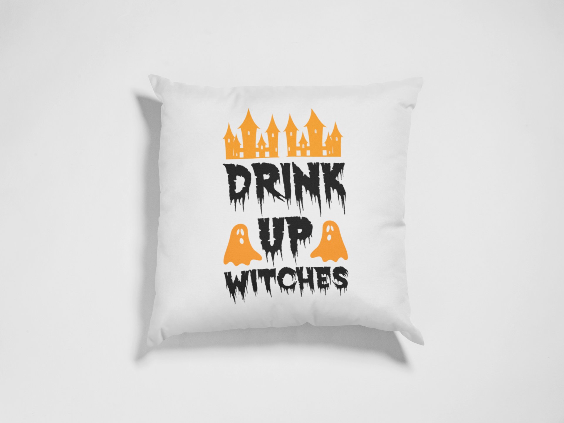 Drink Up Witches-Two Ghost With Hunted House -Halloween Theme Pillow Covers (Pack Of 2)