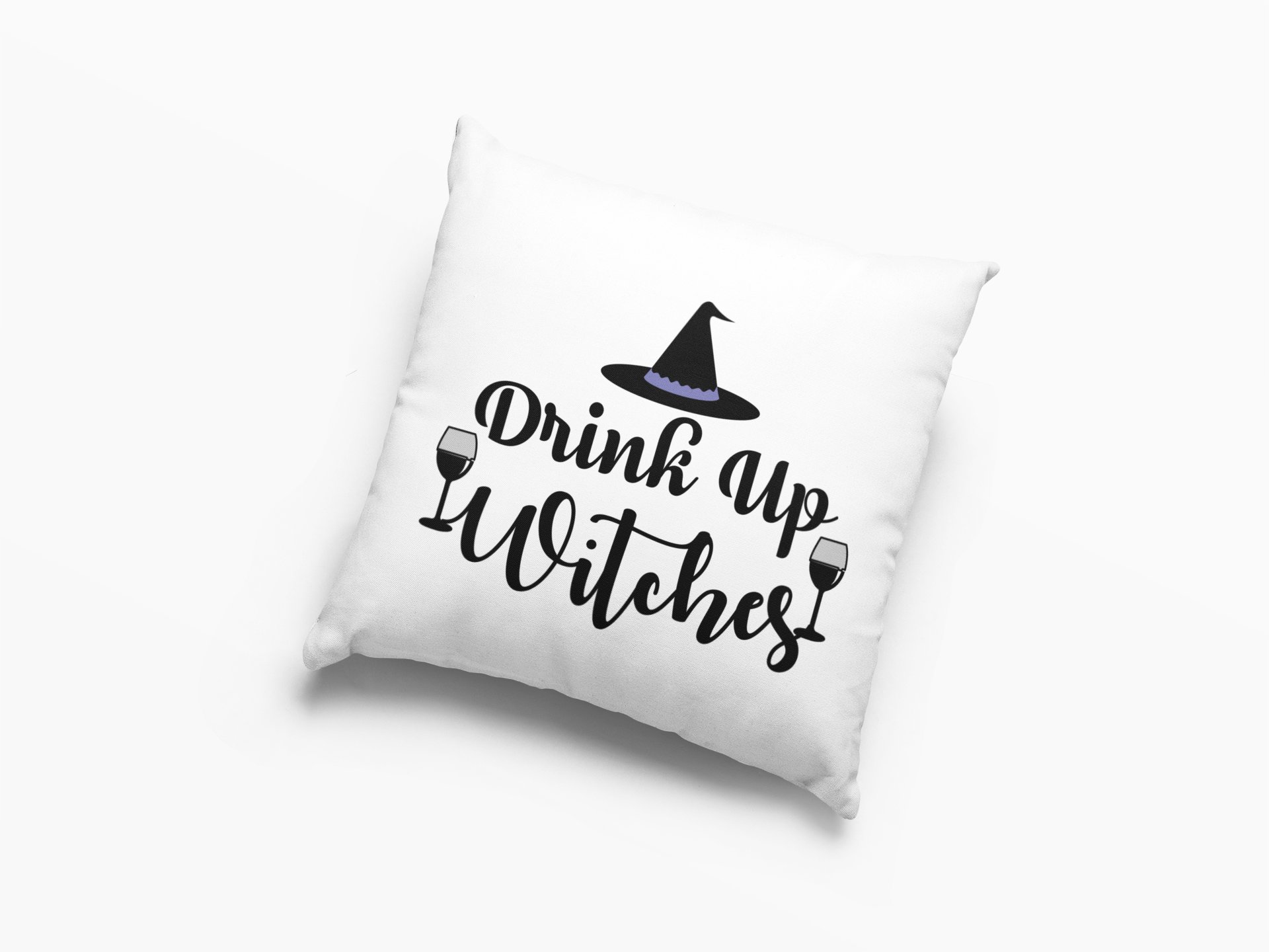 Drink up witches, wine glasses -Halloween Theme Pillow Covers (Pack Of 2)