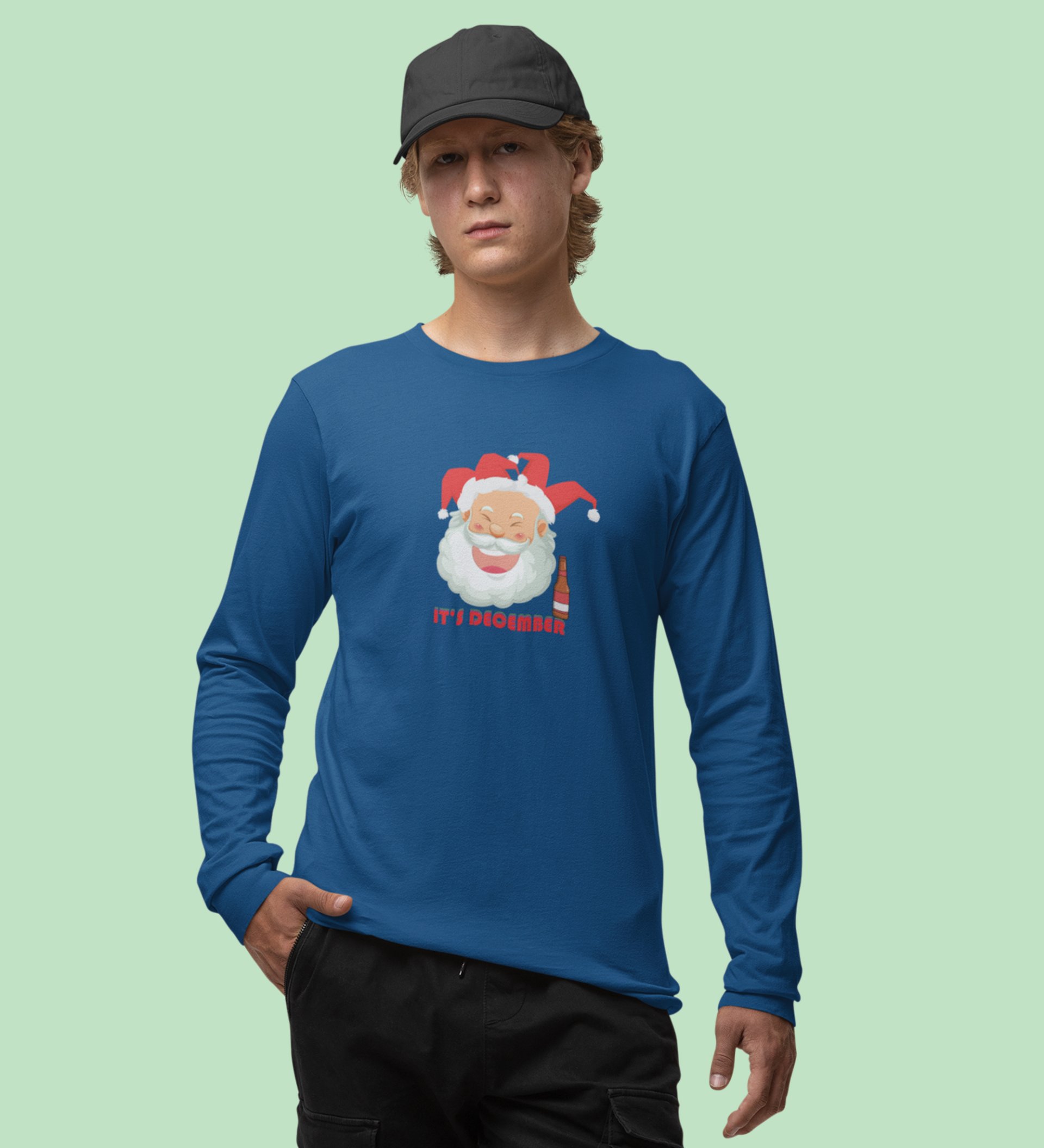 Drunkard Santa : Amazingly DesignedFull Sleeve T-shirt Blue Best Gift For Christmas Celebration