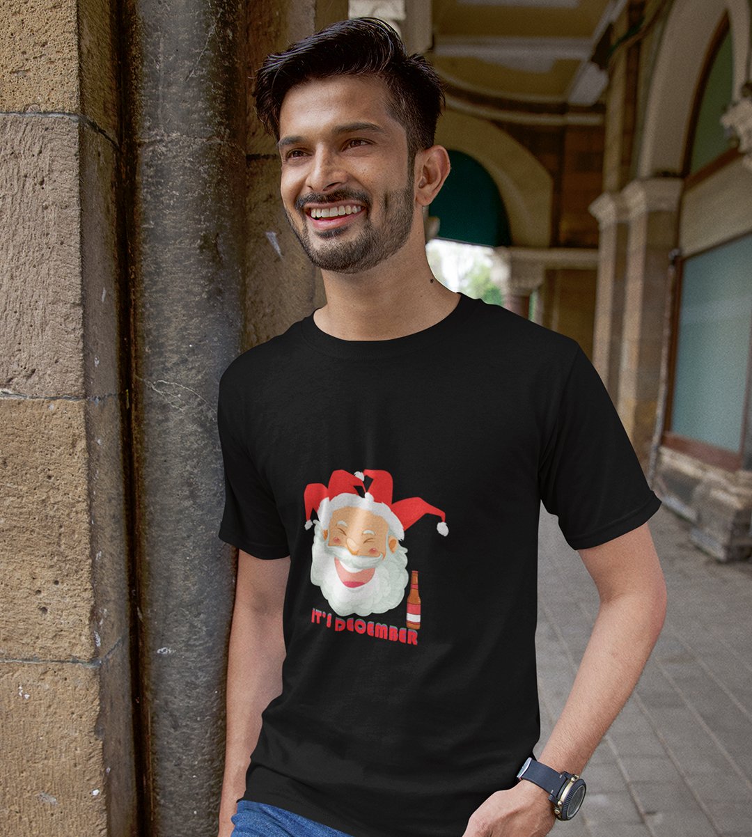 Drunkard Santa : Amazingly Printed T-shirt (Black) Best Gift For Christmas Celebration