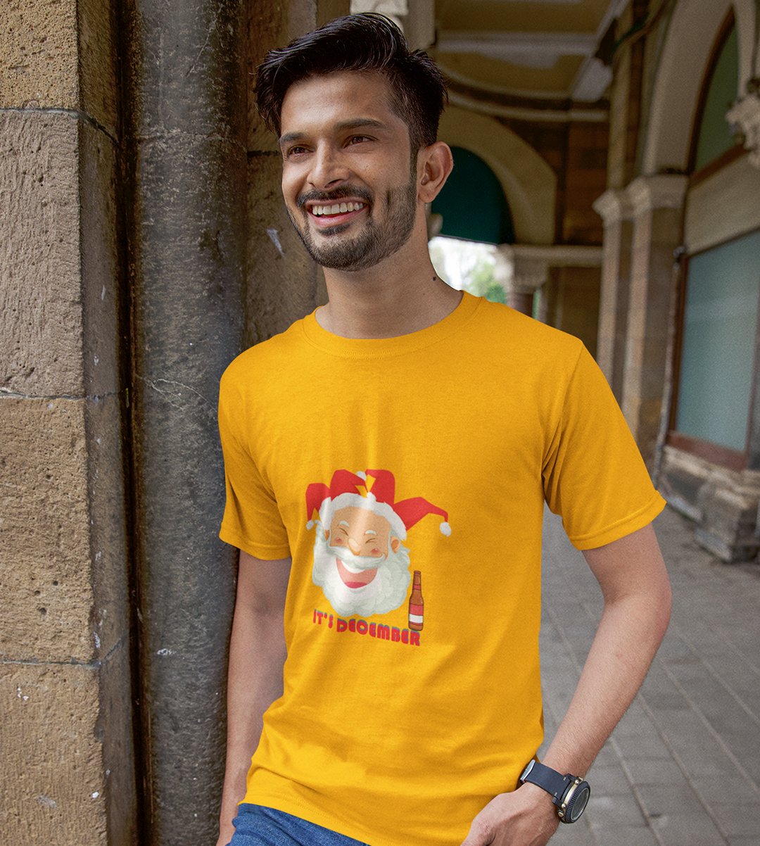 Drunkard Santa : Amazingly Printed T-shirt (Yellow) Best Gift For Christmas Celebration
