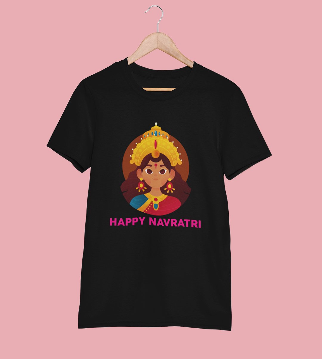 Navratri is a very auspicious festival for hindus. It takes place at the beginning of October and sometimes September. Enjoy the 9 days of festivities with full zeal and make yourself submerged in the love of Maa Durga. Navratri is also known as Durga Puja. And with this Tees, you can shine like a star during this festive season with our navratri themed cotton half sleeved Tshirts. You can pair our t-shirts with trousers and denim of your choice and make it a weekday smart casual or weekend wear. This is durable. This tshirt is smooth and soft which makes you comfortable to wear during all seasons. The printing in it is durable and odourless. It has five sizes, S,M,L,XL,XXL. The Tshirt colour is intact even after repeated washes. It can be kept in your wardrobe and hangers. Please avoid washing mashine to clean this Tee, it may affect the print. Hand wash only. We have brought you many navratri related designs printed on our different colour Tshirts to choose from. Grab it now.