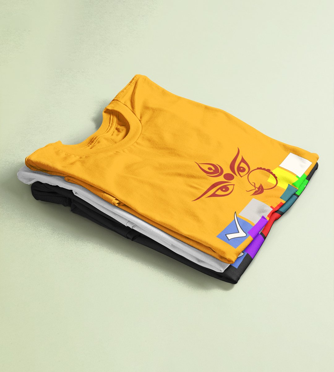Navratri is a very auspicious festival for hindus. It takes place at the beginning of October and sometimes September. Enjoy the 9 days of festivities with full zeal and make yourself submerged in the love of Maa Durga. Navratri is also known as Durga Puja. And with this Tees, you can shine like a star during this festive season with our navratri themed cotton half sleeved Tshirts. You can pair our t-shirts with trousers and denim of your choice and make it a weekday smart casual or weekend wear. This is durable. This tshirt is smooth and soft which makes you comfortable to wear during all seasons. The printing in it is durable and odourless. It has five sizes, S,M,L,XL,XXL. The Tshirt colour is intact even after repeated washes. It can be kept in your wardrobe and hangers. Please avoid washing mashine to clean this Tee, it may affect the print. Hand wash only. We have brought you many navratri related designs printed on our different colour Tshirts to choose from. Grab it now.