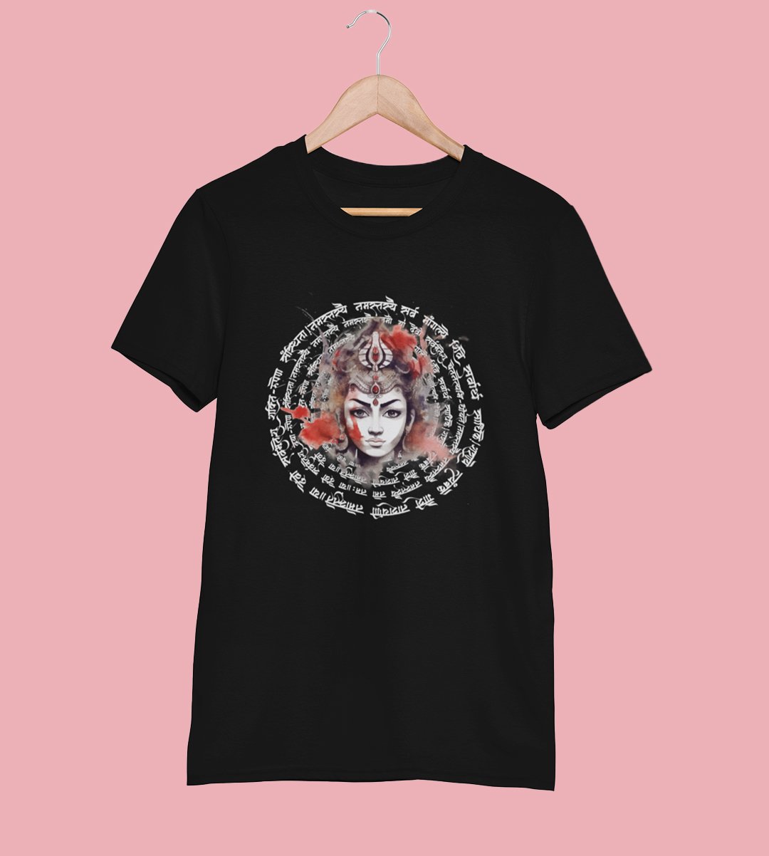 Durga maa face (Mantras) printed unisex adults round neck cotton half-sleeve black tshirt specially for Navratri festival/ Durga puja