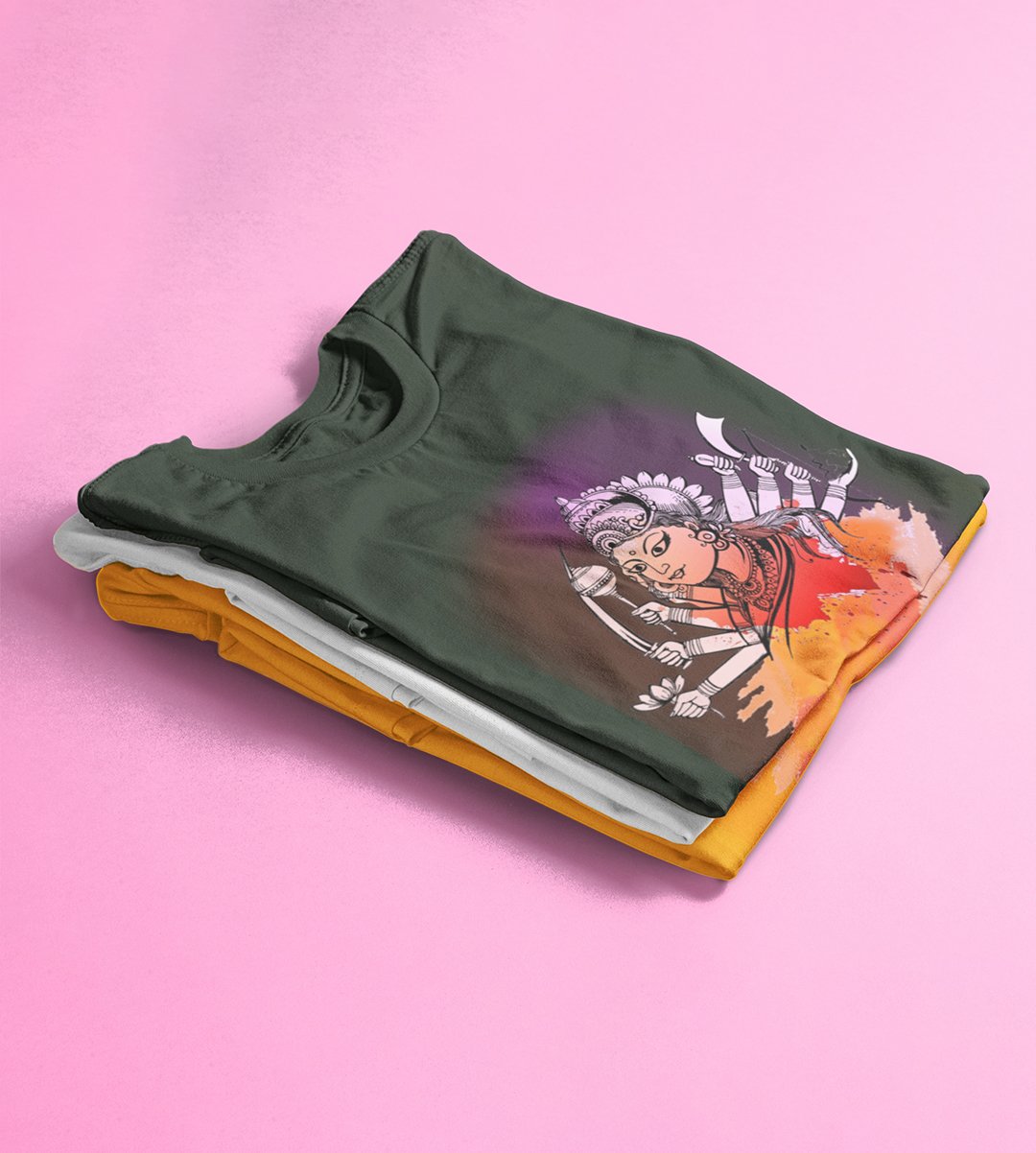 Navratri is a very auspicious festival for hindus. It takes place at the beginning of October and sometimes September. Enjoy the 9 days of festivities with full zeal and make yourself submerged in the love of Maa Durga. Navratri is also known as Durga Puja. And with this Tees, you can shine like a star during this festive season with our navratri themed cotton half sleeved Tshirts. You can pair our t-shirts with trousers and denim of your choice and make it a weekday smart casual or weekend wear. This is durable. This tshirt is smooth and soft which makes you comfortable to wear during all seasons. The printing in it is durable and odourless. It has five sizes, S,M,L,XL,XXL. The Tshirt colour is intact even after repeated washes. It can be kept in your wardrobe and hangers. Please avoid washing mashine to clean this Tee, it may affect the print. Hand wash only. We have brought you many navratri related designs printed on our different colour Tshirts to choose from. Grab it now.