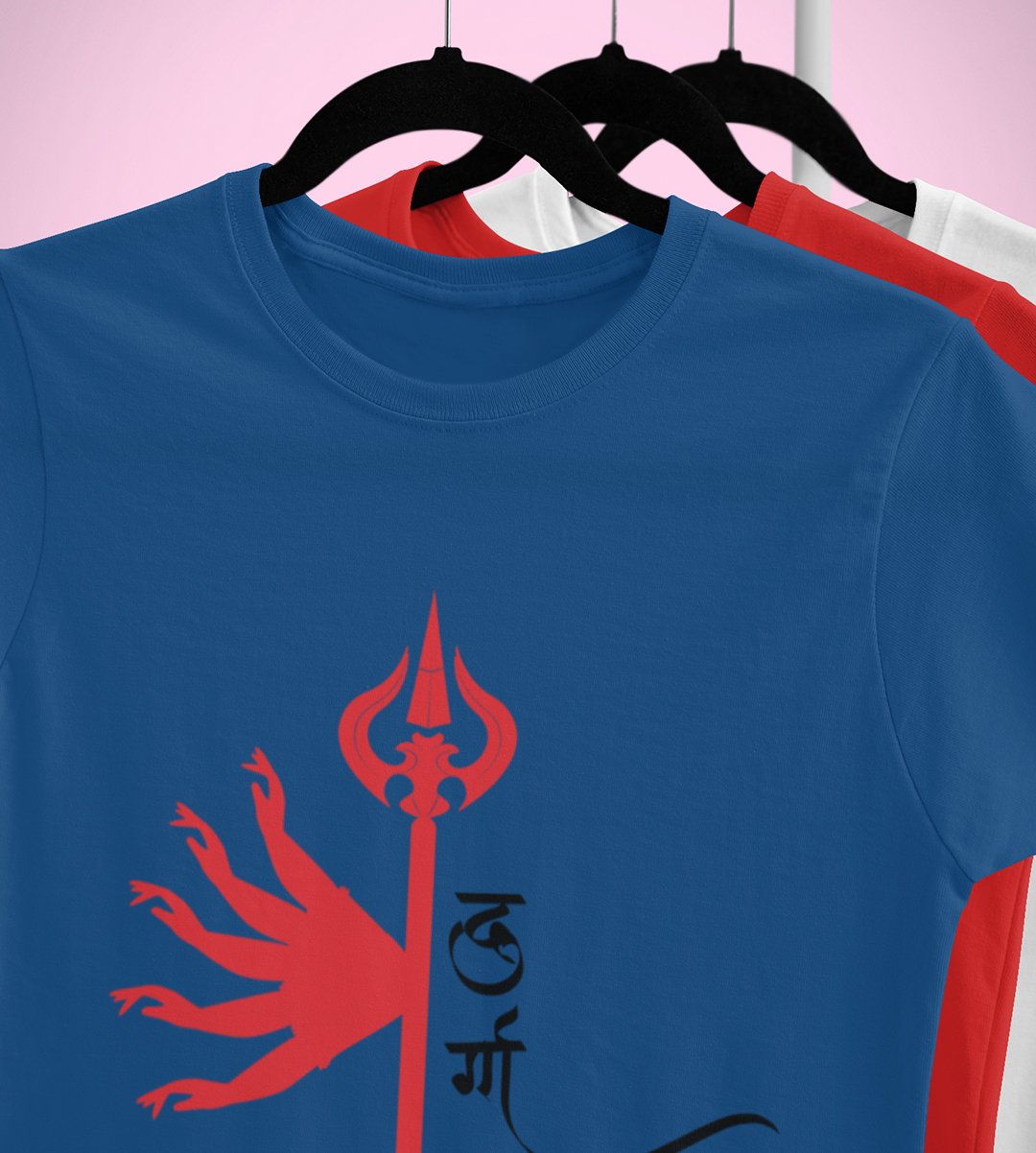 Durga (trishul) printed unisex adults round neck cotton half-sleeve blue tshirt specially for Navratri festival/ Durga puja