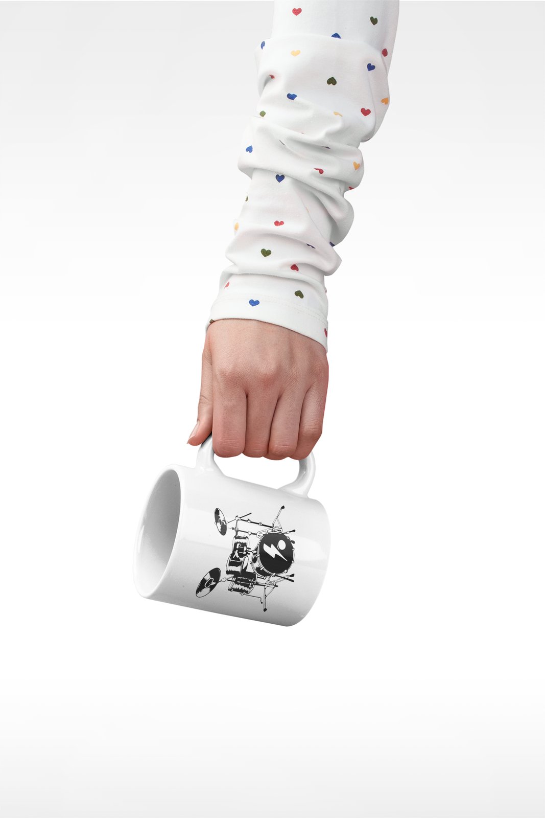 Drum Set - music themed printed ceramic white coffee and tea mugs/ cups for music lovers