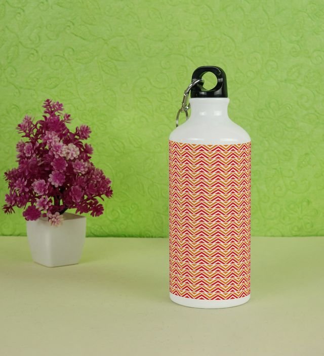 Dynamic Red and Orange Zigzag Pattern Seamless Print Printed Aluminium Water Bottle 600ml