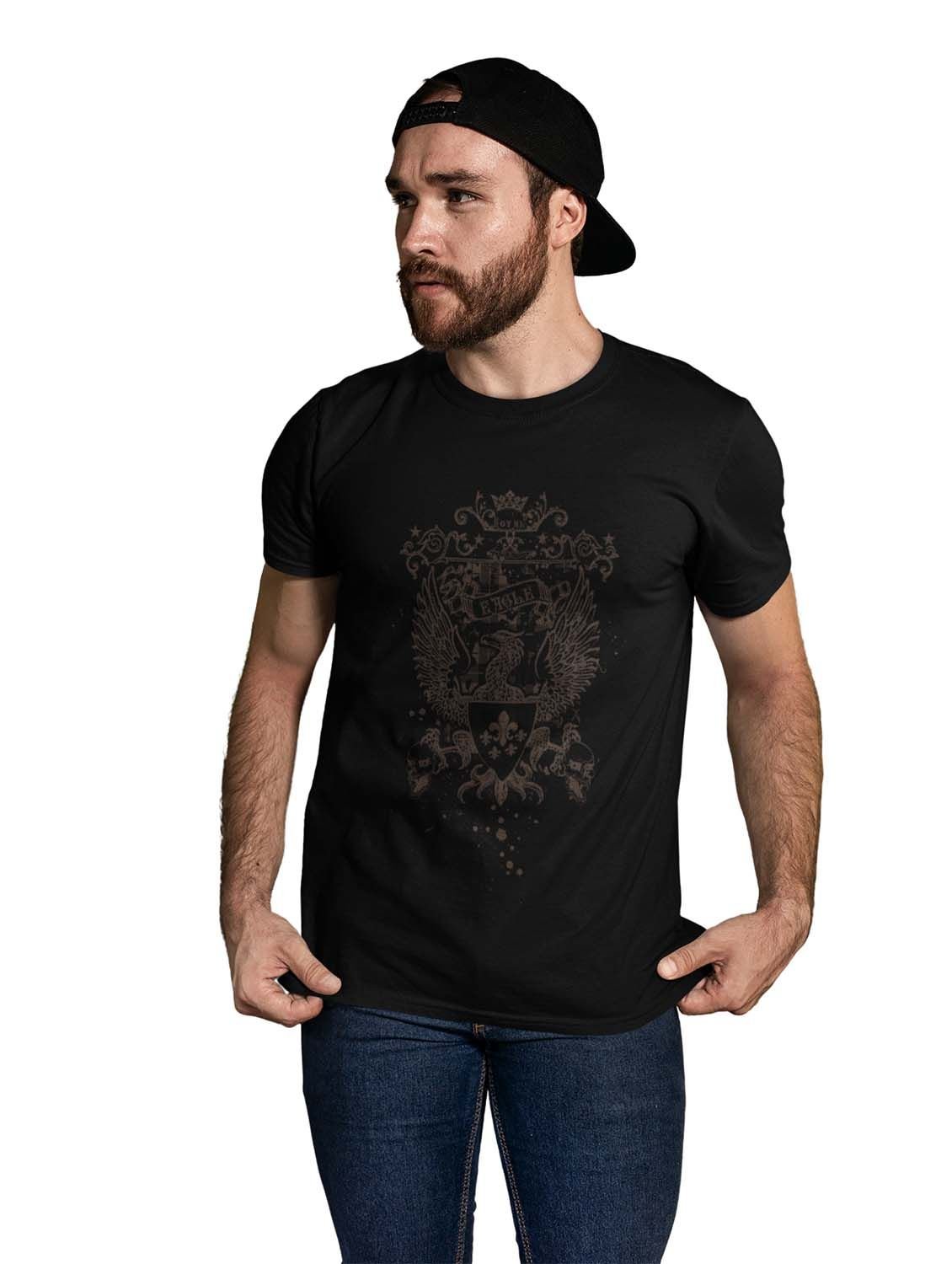 The Royal Eagle Black Round Neck Cotton Half Sleeved T-Shirt with Printed Graphics