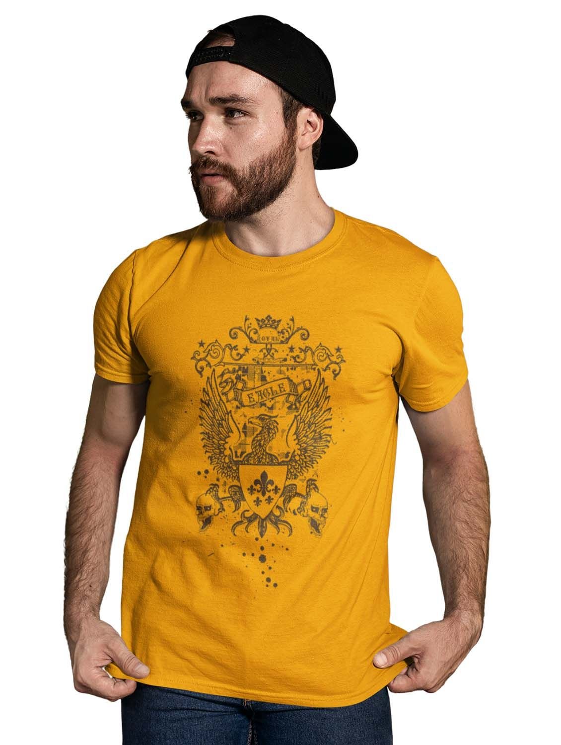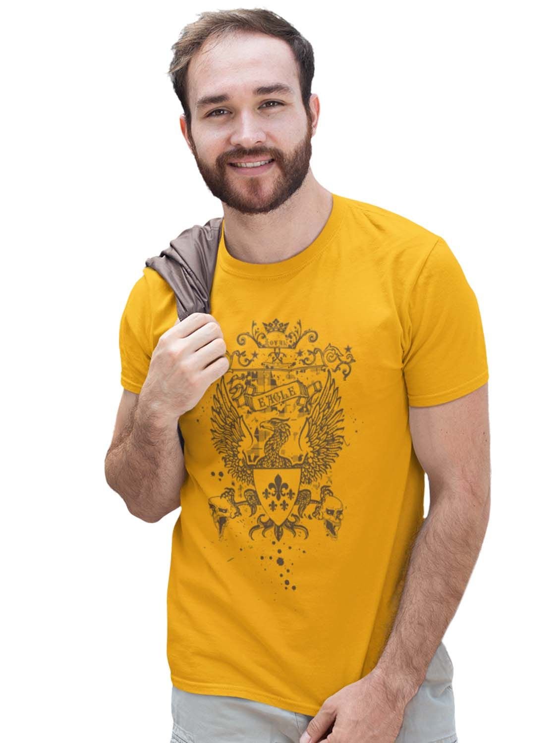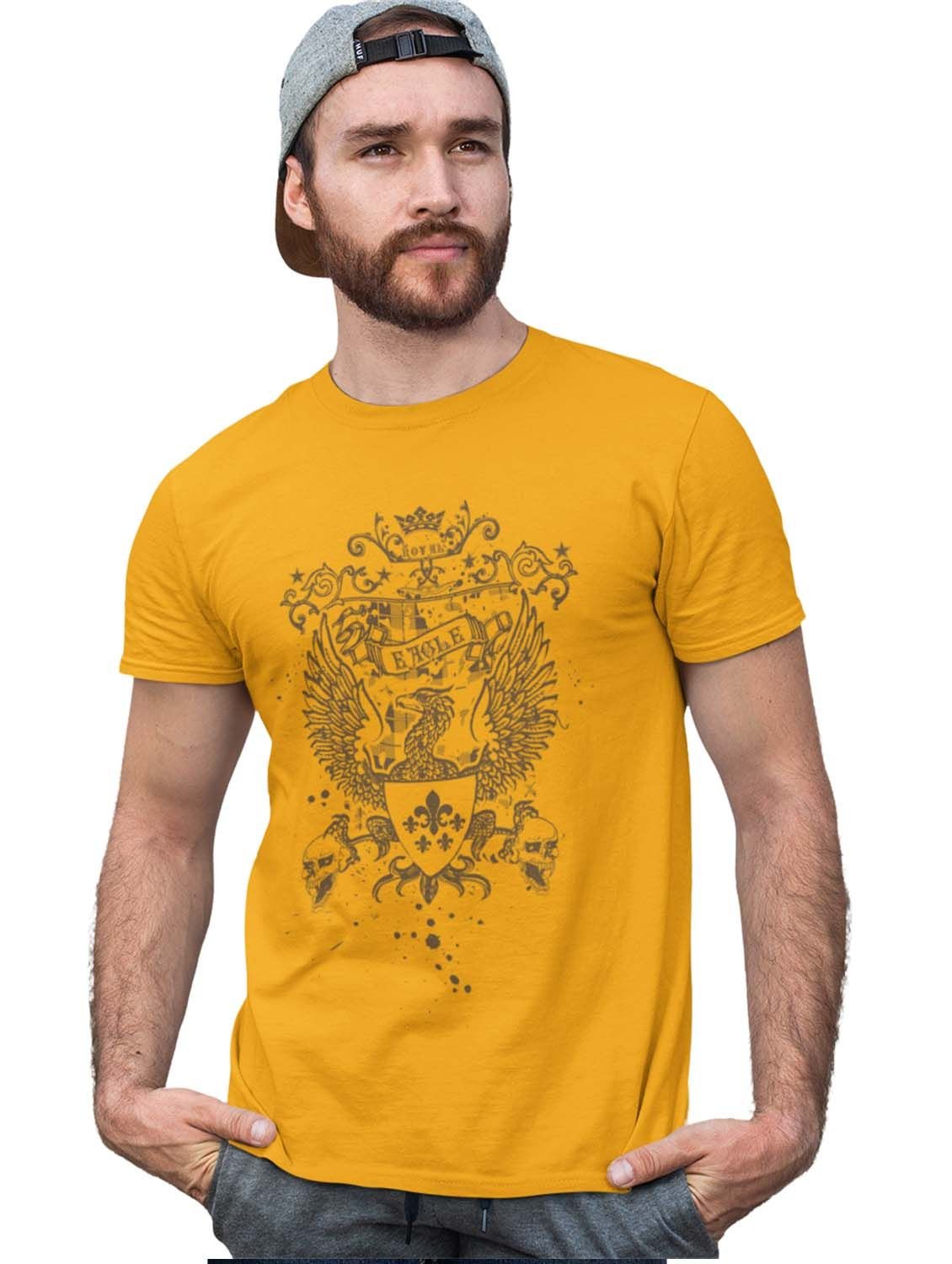 The Royal Eagle Yellow Round Neck Cotton Half Sleeved T-Shirt with Printed Graphics