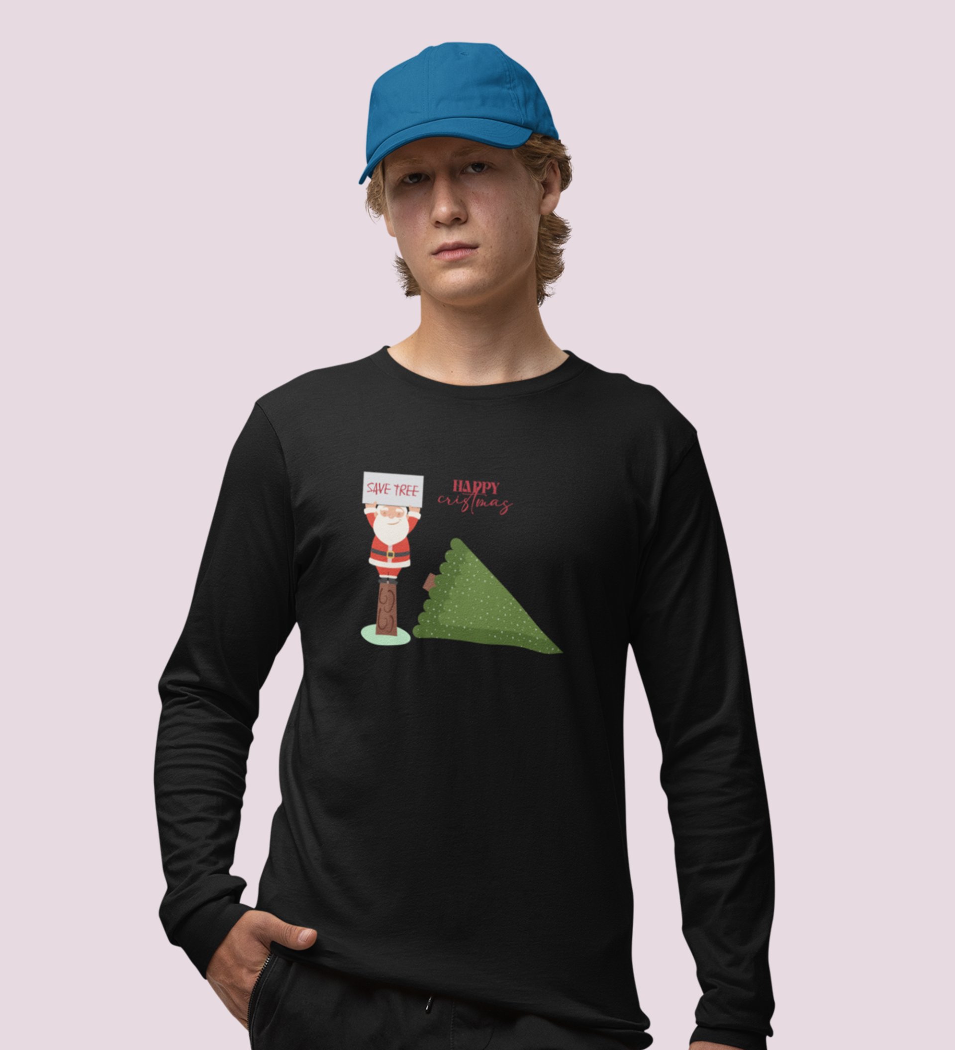 Eco-Friendly Santa: Beautifully DesignedFull Sleeve T-shirt Black Exclusive Gift For Boys Girls