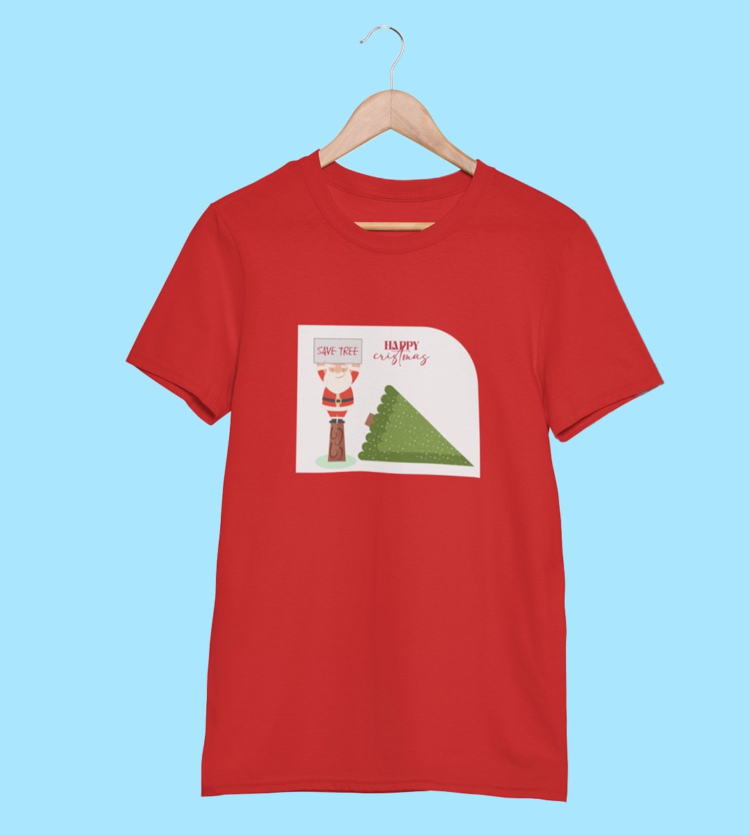 Eco-Friendly Santa: Beautifully Printed T-shirt (Red) Exclusive Gift For Boys Girls