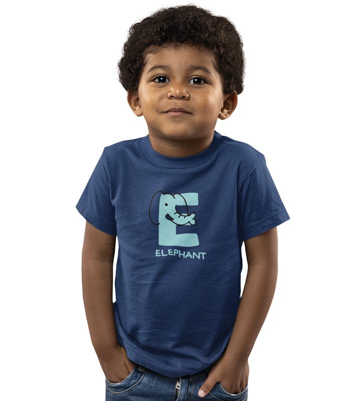 Elephantastic, Boys Round Neck Blended Cotton Tshirt (Navy blue)