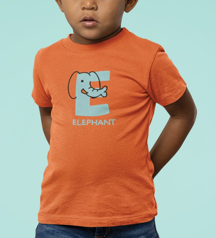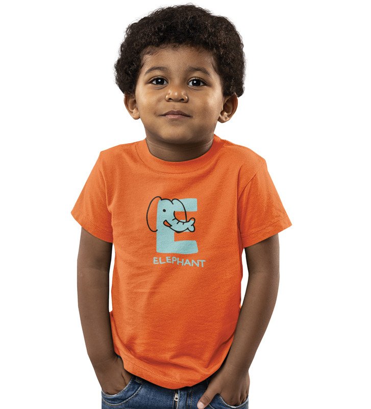 Elephantastic, Boys Round Neck Blended Cotton Tshirt (Orange)