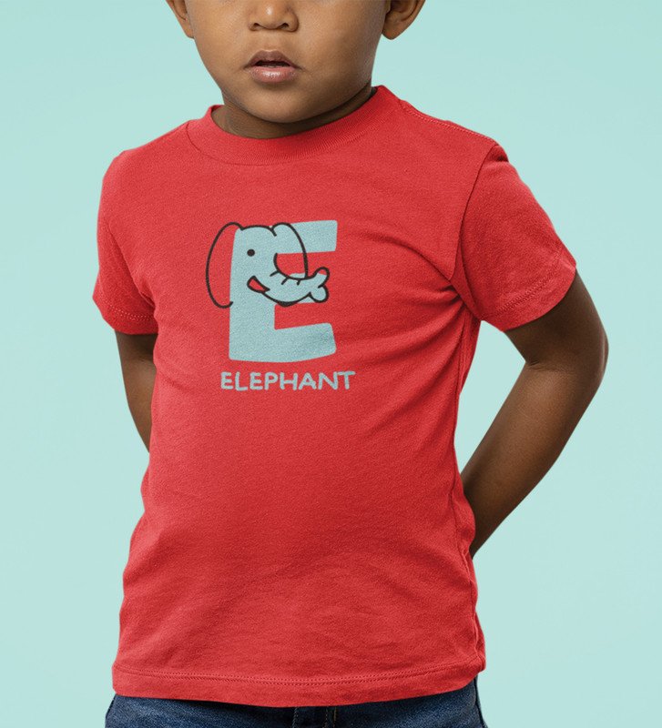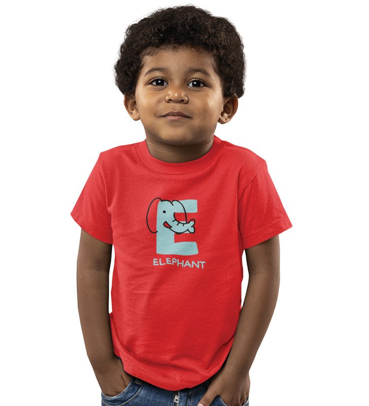 Elephantastic, Boys Round Neck Blended Cotton Tshirt (Red)