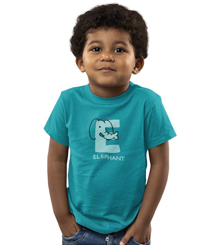 Elephantastic, Boys Round Neck Blended Cotton Tshirt (Teal)