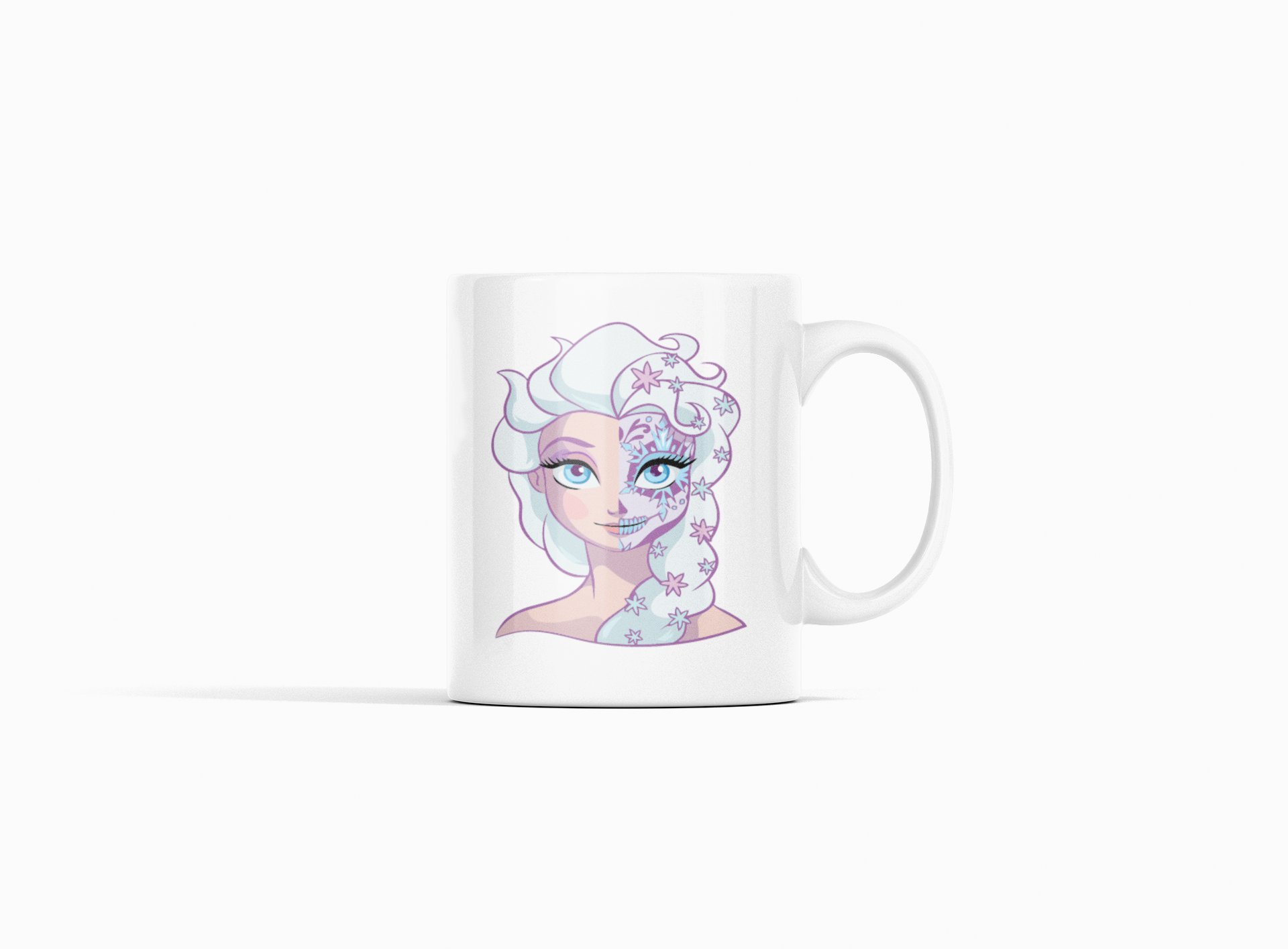 Elsa face - animation themed printed ceramic white coffee and tea mugs/ cups for animation lovers