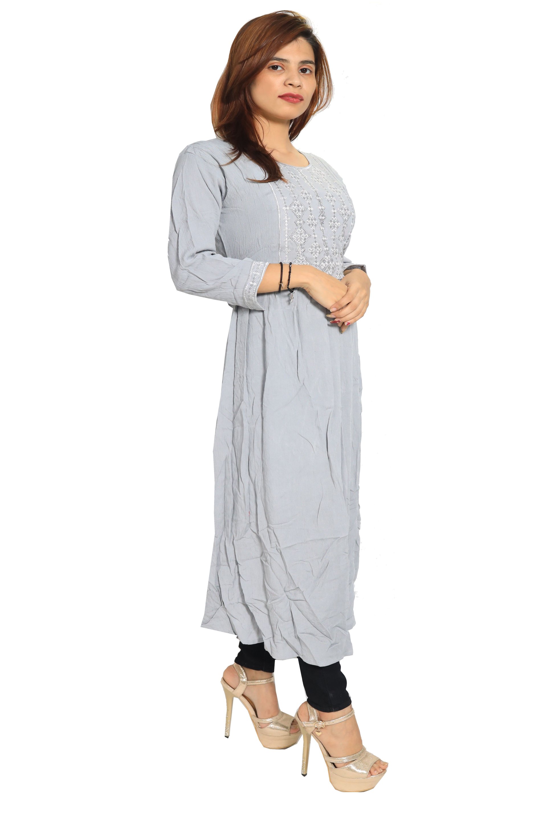 Barfi square chained embroided straight Kurti for Womens/ girls(Grey)- Made up of Rayon and designed for you plesant and comfy