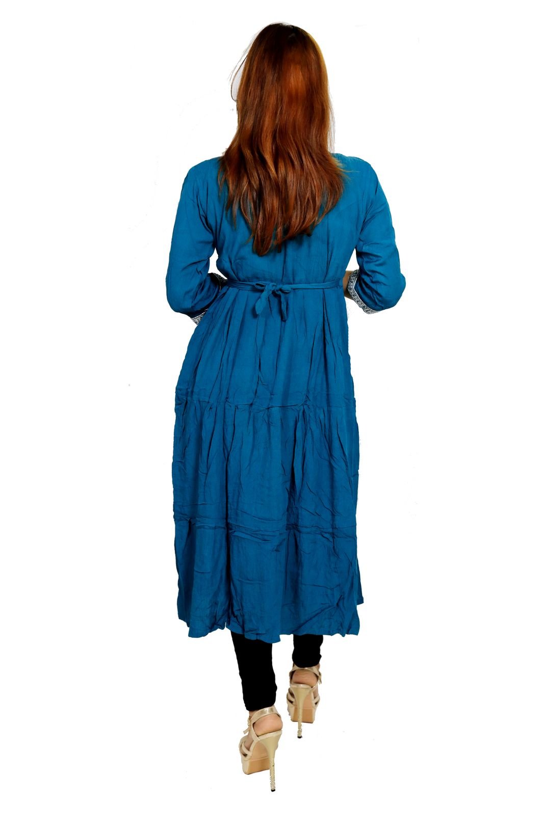 Curved square embroided straight kurti for womens / girls (Sky blue kurti) - Made up of Rayon and designed for you plesant and comfy